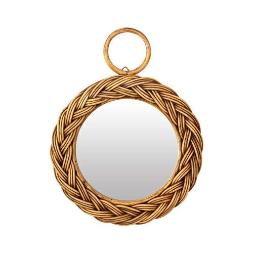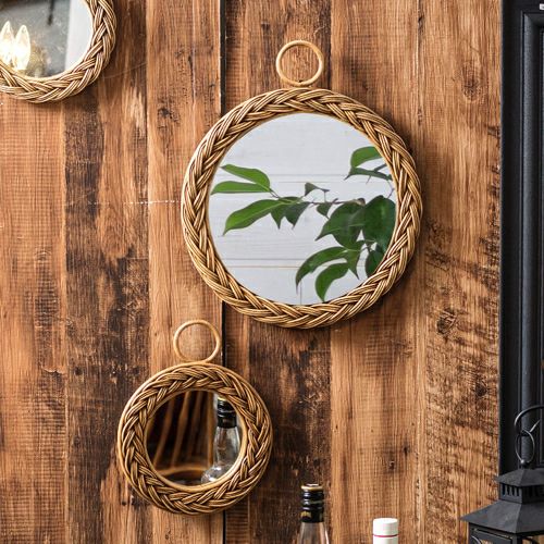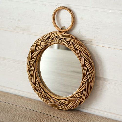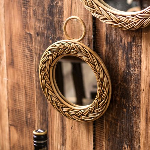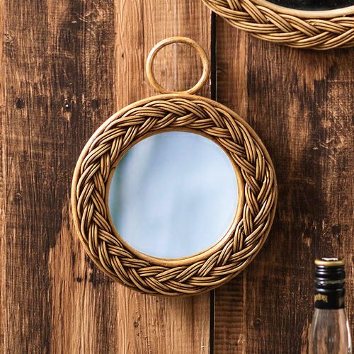 掛け鏡 円形 小さめ コスメミラー 籐 アンティーク風 壁掛けミラー 丸型 編み込み柄 ラタン Sサイズ 直径22cm [91328]【 ミラー 鏡 丸 ウォールミラー インテリアミラー 天然素材 壁掛け 吊り下げ アンティーク調 化粧鏡 おしゃれ メイクアップミラー シンプル アジアン雑貨 アジアン 雑貨 リゾート 】