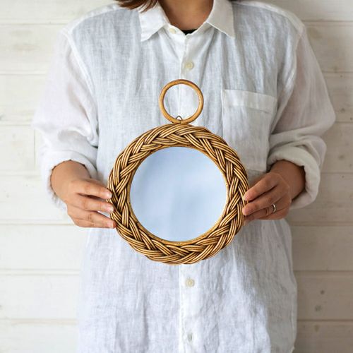 ラタン編みフレームミラー