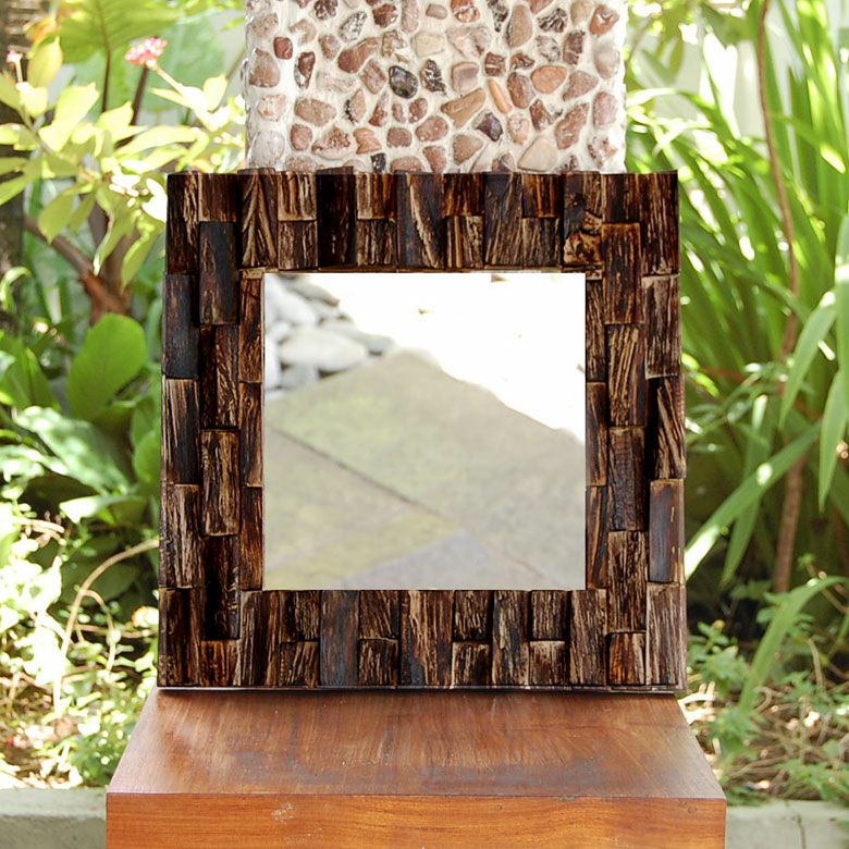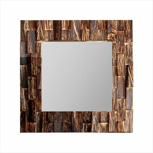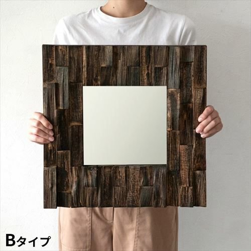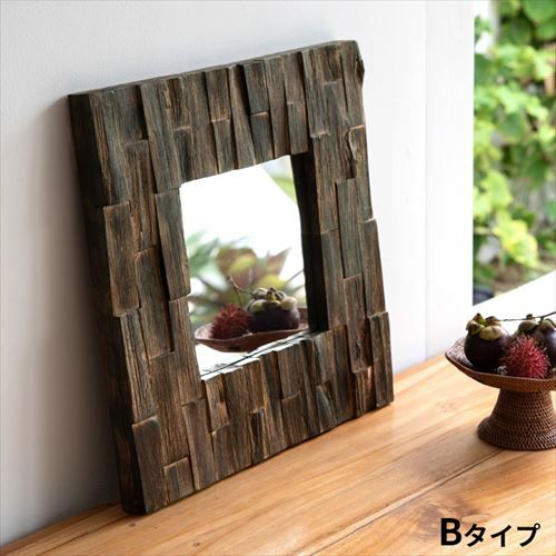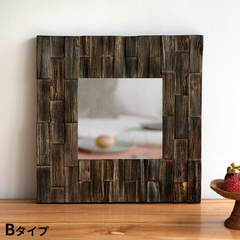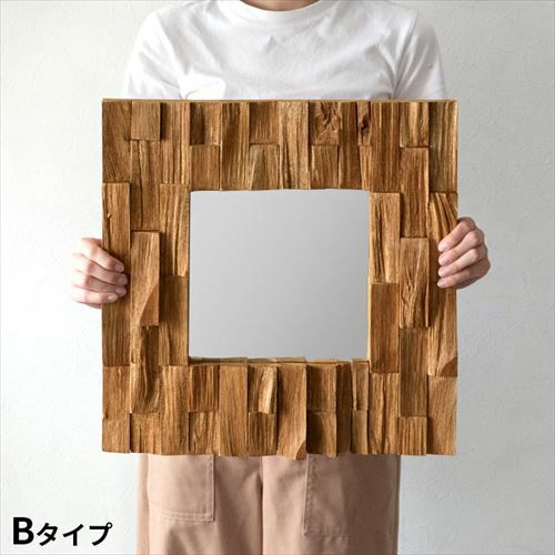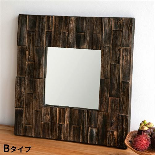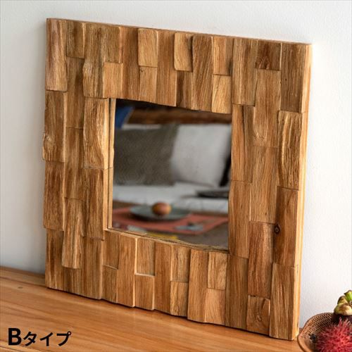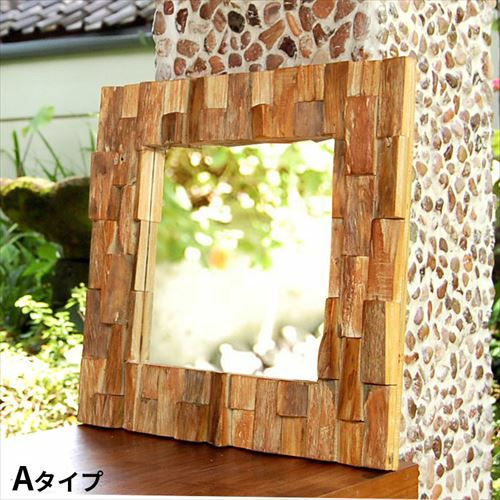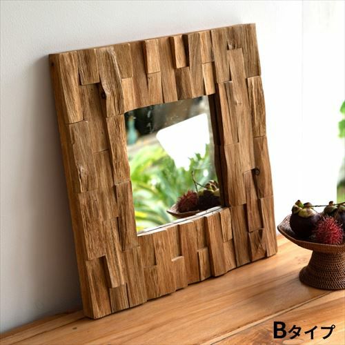 鏡 スクエア 四角 角型 玄関鏡 木 茶色 リサイクルウッド 鏡 壁掛け 木製 フレーム 正方形 チークウッド ブラウン Mサイズ W40xD3.5xH40cm [10865-10865b]【 ミラー 枠付き ウォールミラー かがみ カガミ リビング 玄関 廊下 トイレ 寝室 洗面所 ドレッサー メイク 化粧台 立て掛け おしゃれ 北欧 和風 和室 アジアン 雑貨 】