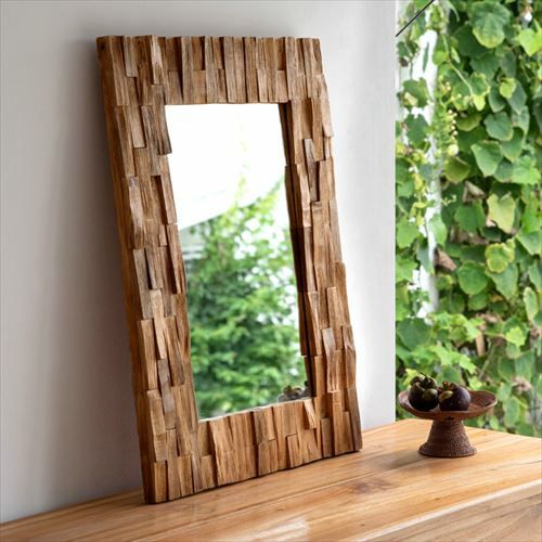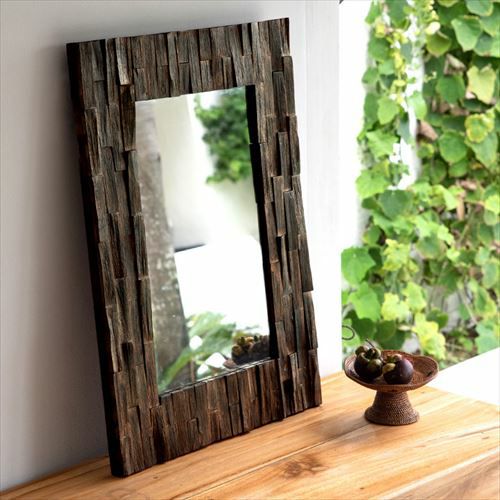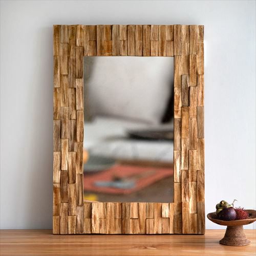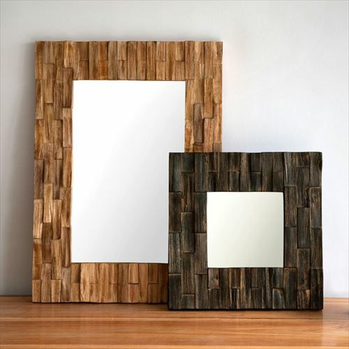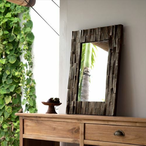 鏡 スクエア 四角 角型 玄関鏡 木 茶色 リサイクルウッド ミラー 壁掛け 木製 フレーム 木枠 正方形 チークウッド ナチュラル Lサイズ W50xD3.5xH68cm [10868]【 鏡 ミラー 枠付き ウォールミラー かがみ カガミ リビング 玄関 廊下 トイレ 寝室 洗面所 ドレッサー 化粧台 立て掛け おしゃれ 北欧 和風 和室 アジアン 雑貨 】
