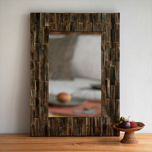鏡 スクエア 四角 角型 玄関鏡 木 茶色 リサイクルウッド 鏡 壁掛け 木製 フレーム 長方形 チークウッド ブラウン Lサイズ W50xD3.5xH68cm [10867]【 ミラー 枠付き ウォールミラー かがみ カガミ リビング 玄関 廊下 トイレ 寝室 洗面所 ドレッサー メイク 化粧台 立て掛け おしゃれ 北欧 和風 和室 賃貸 アジアン 雑貨 】