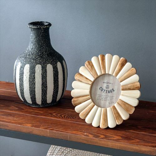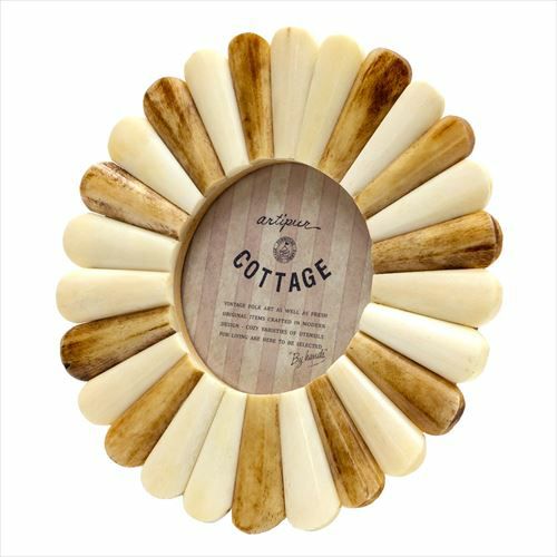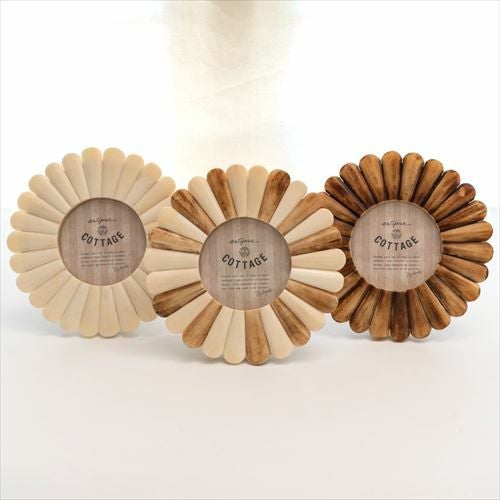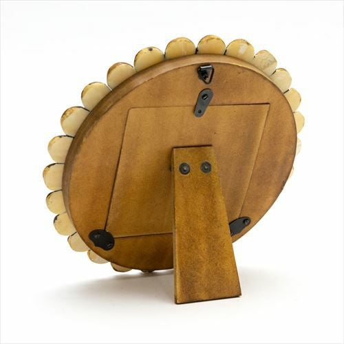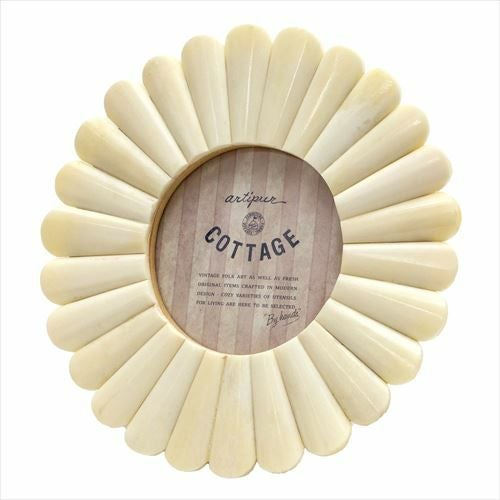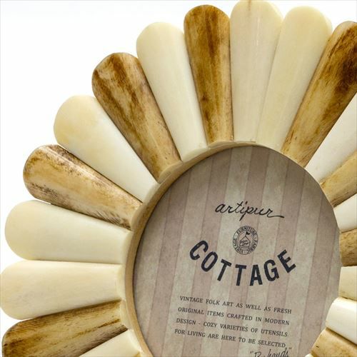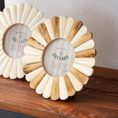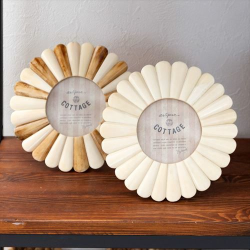 写真フレーム 花形 アジアン雑貨 ハンドメイド 天然素材 フォトフレーム 写真たて ラウンド 直径19cm フラワーモチーフ [94211-br 94211-iv 94211-mx]【 ブラウン アイボリー ミックスカラー 花形 おしゃれ アンティーク調 バッファローボーン 】