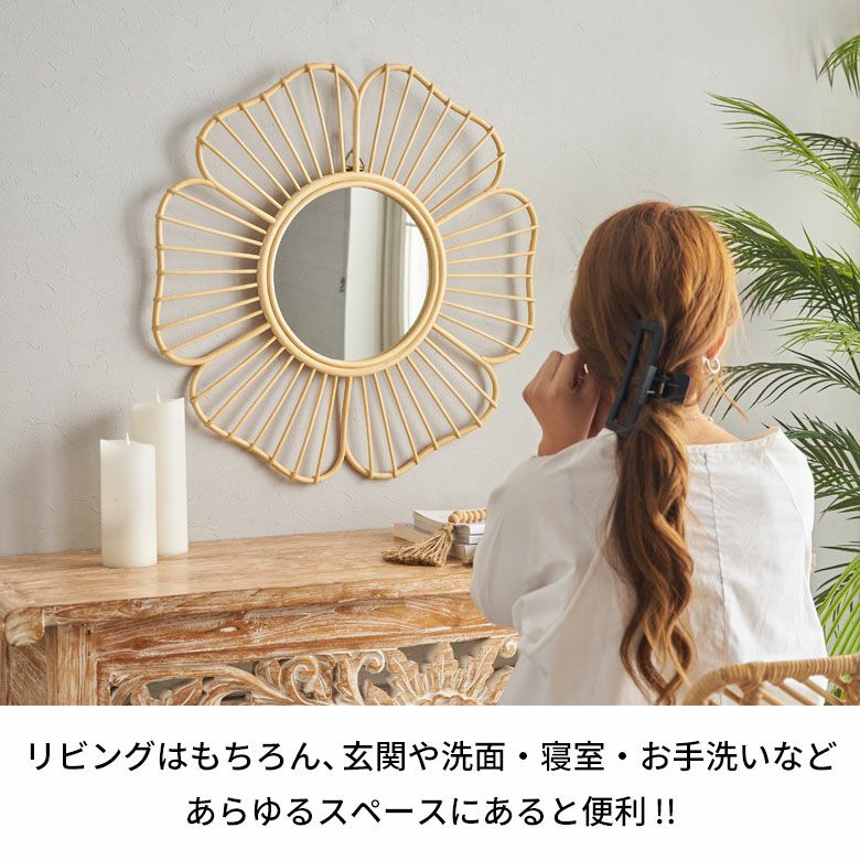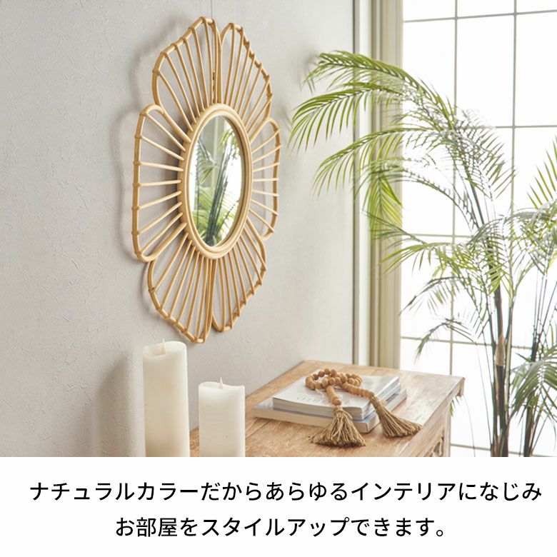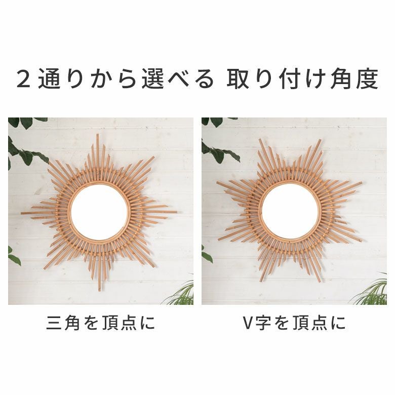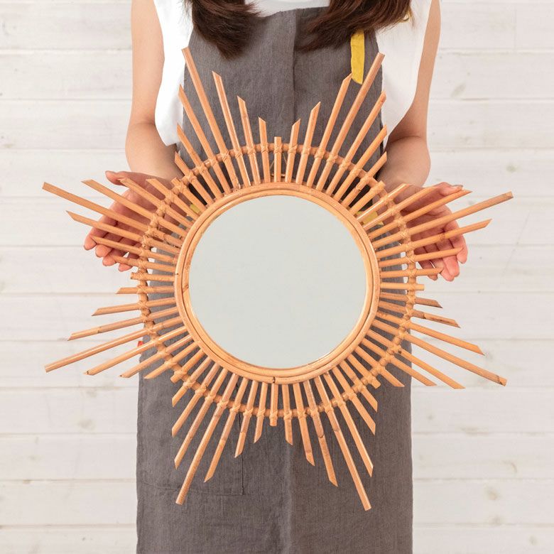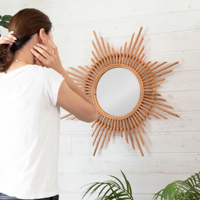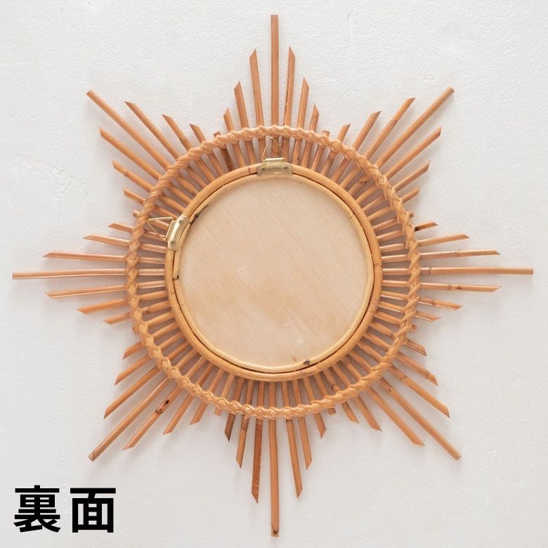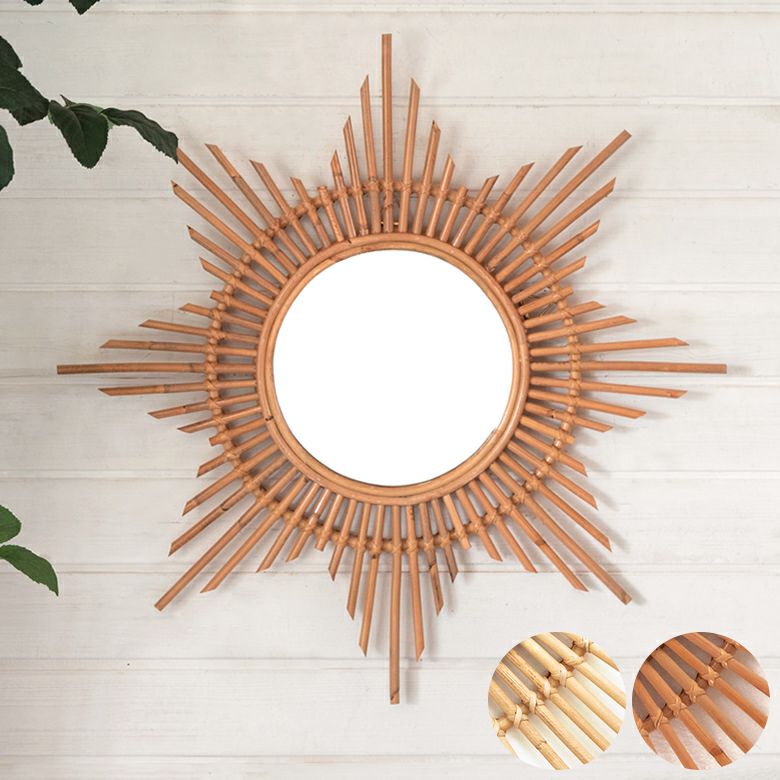壁掛鏡 鏡 壁掛け式 吊り下げ ミラー デザインミラー 化粧鏡 ミラー 鏡 丸型 壁掛け ラタン アジアン 直径60cm ミラー部分径23.5cm[13704]【 壁掛けミラー サンミラー 太陽 放射状 ウォールミラー 壁掛け鏡 ラウンドミラー 円形 ウォールデコレーション インテリア アジアン雑貨 バリ島 リゾート おしゃれ 】