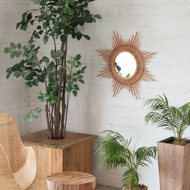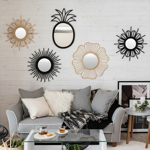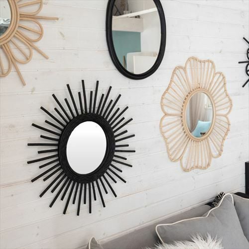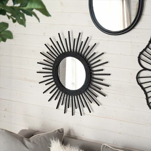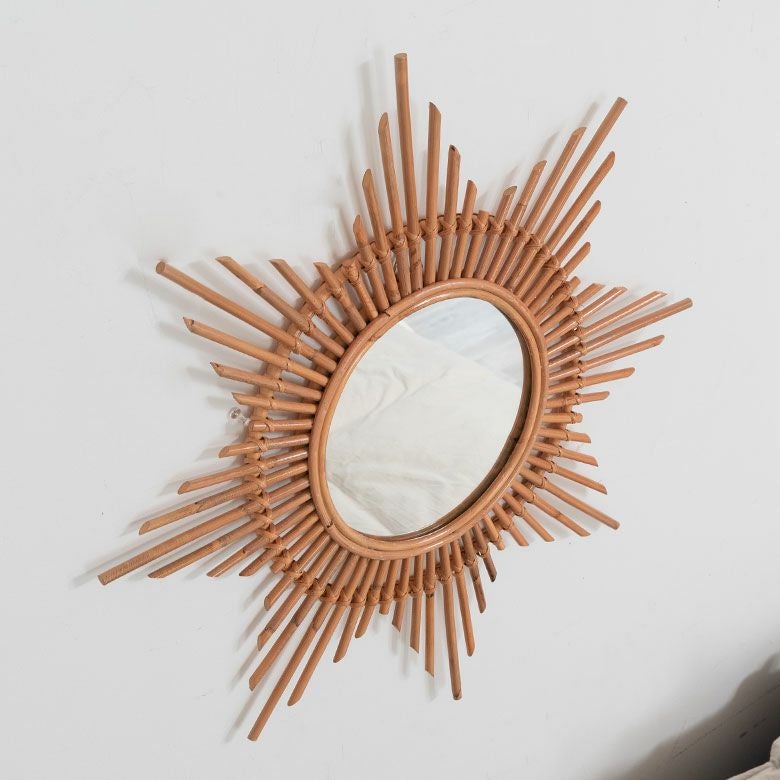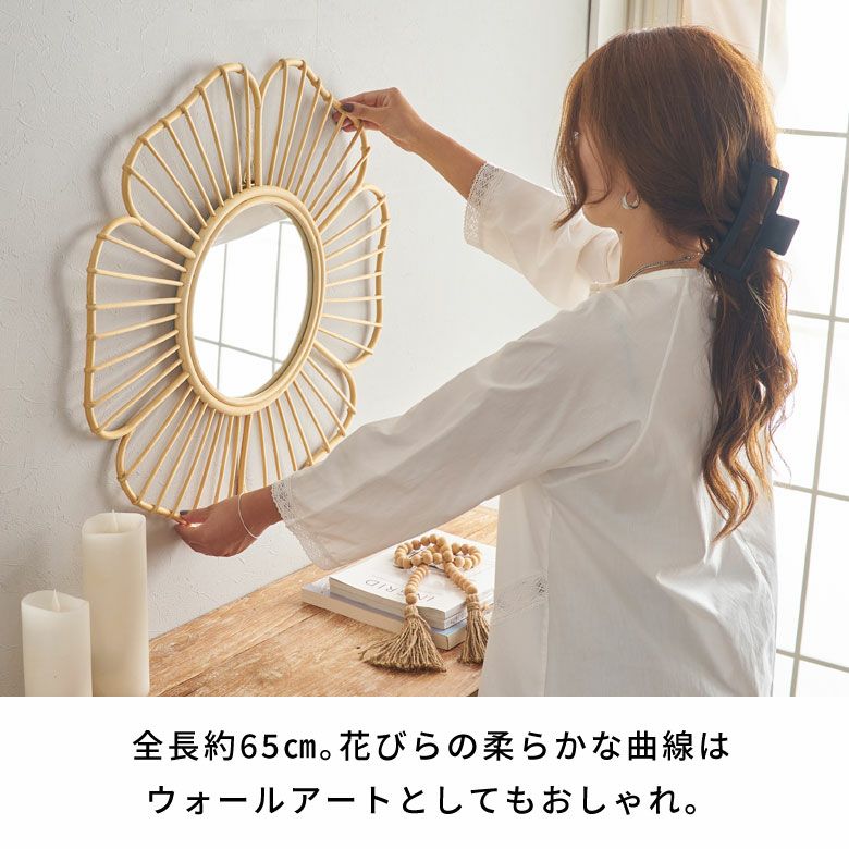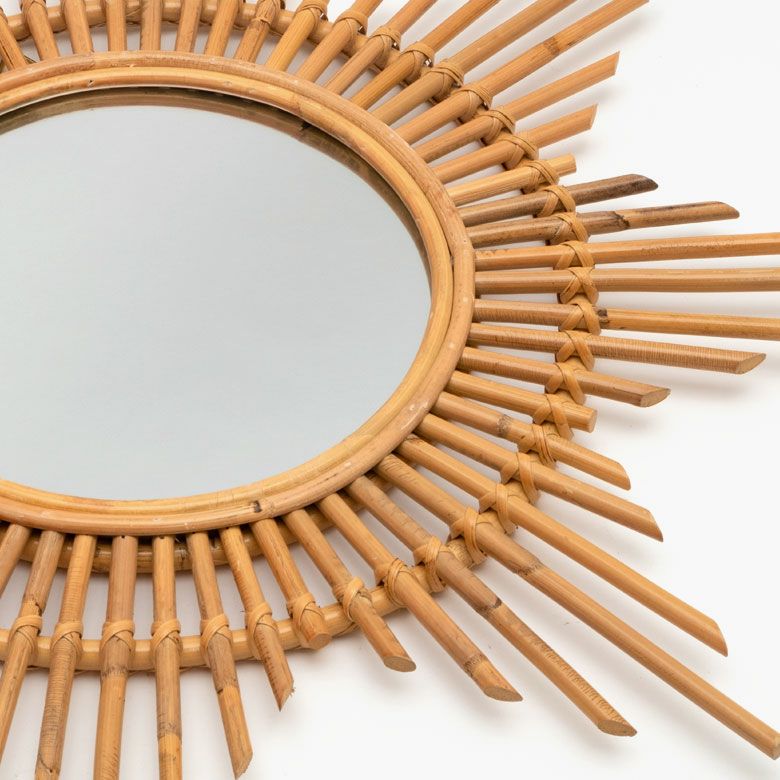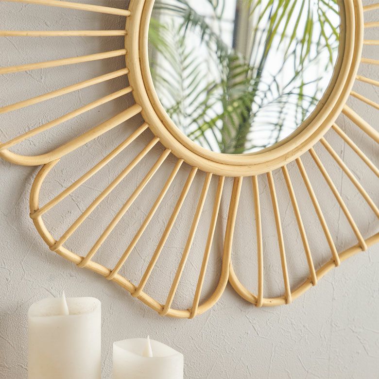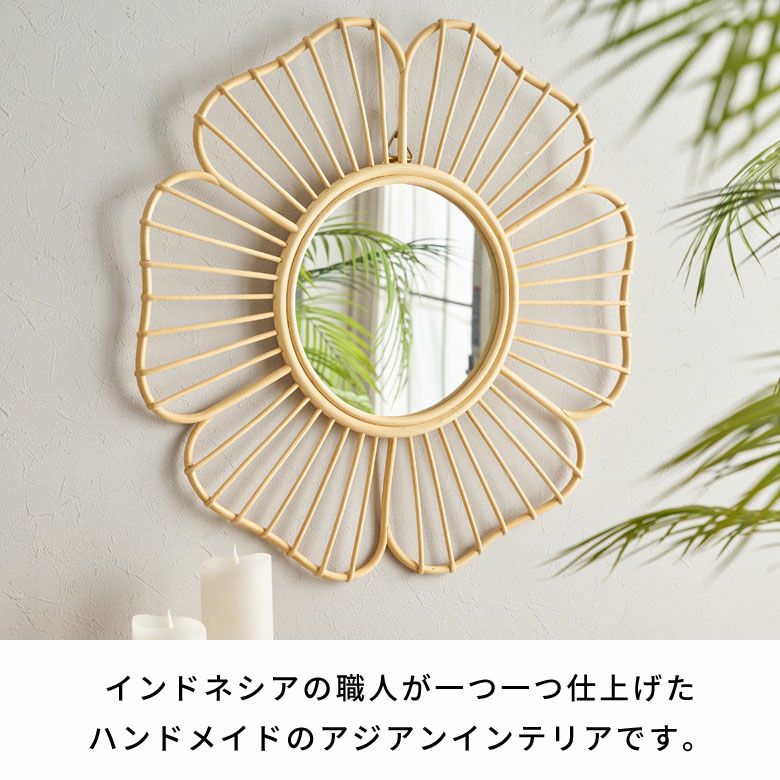 壁掛鏡 鏡 壁掛け式 吊り下げ ミラー デザインミラー 化粧鏡 ミラー 鏡 丸型 壁掛け ラタン アジアン 直径60cm ミラー部分径23.5cm[13704]【 壁掛けミラー サンミラー 太陽 放射状 ウォールミラー 壁掛け鏡 ラウンドミラー 円形 ウォールデコレーション インテリア アジアン雑貨 バリ島 リゾート おしゃれ 】