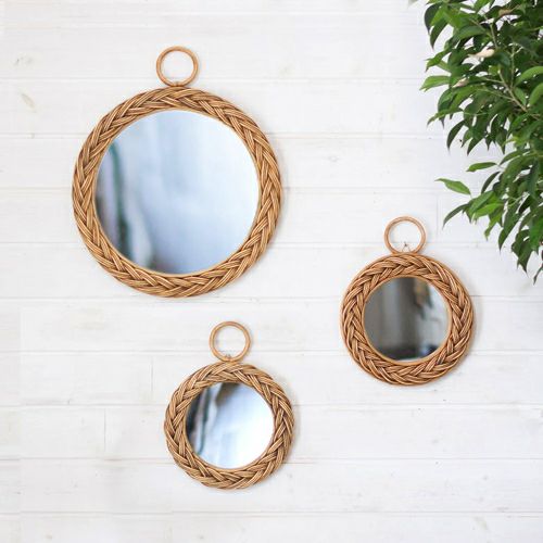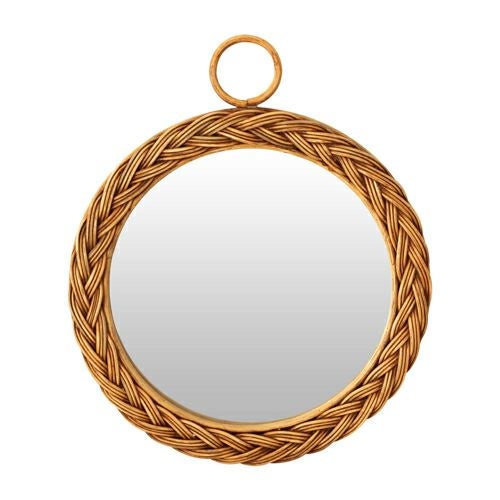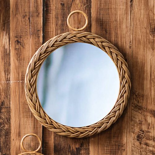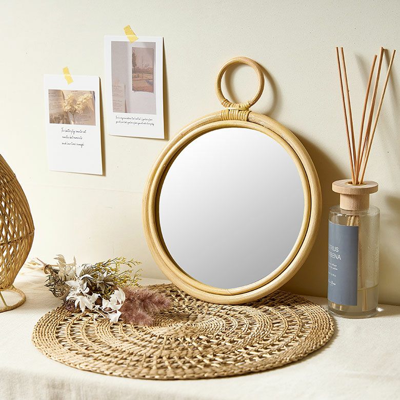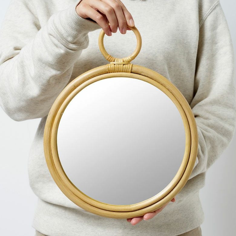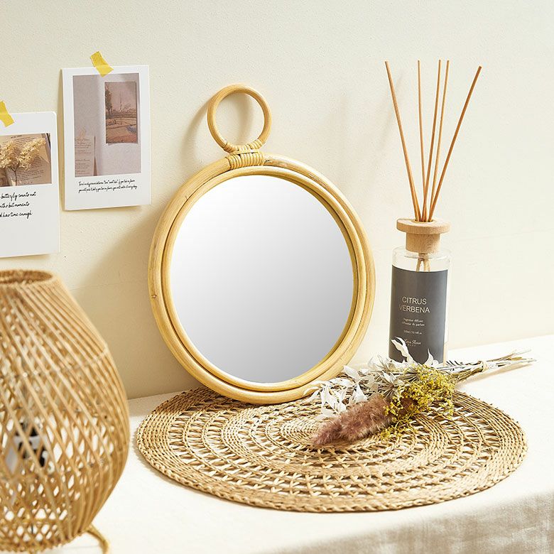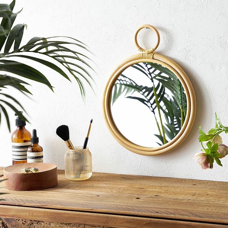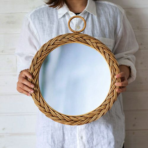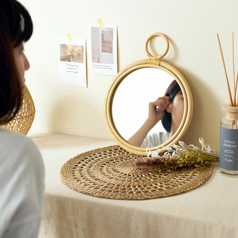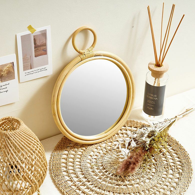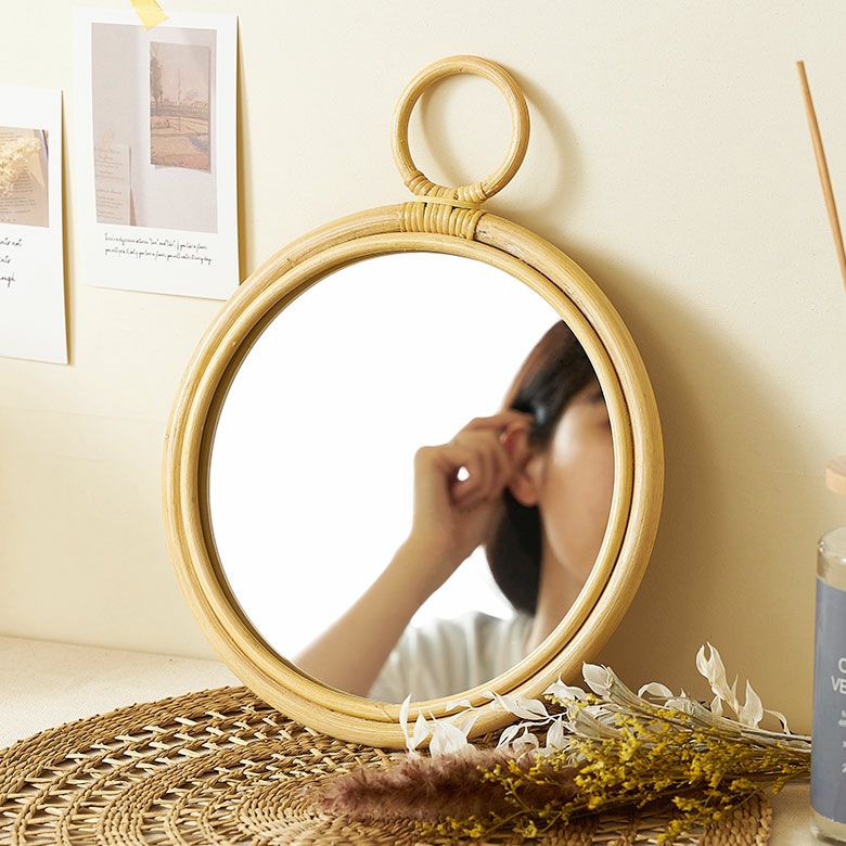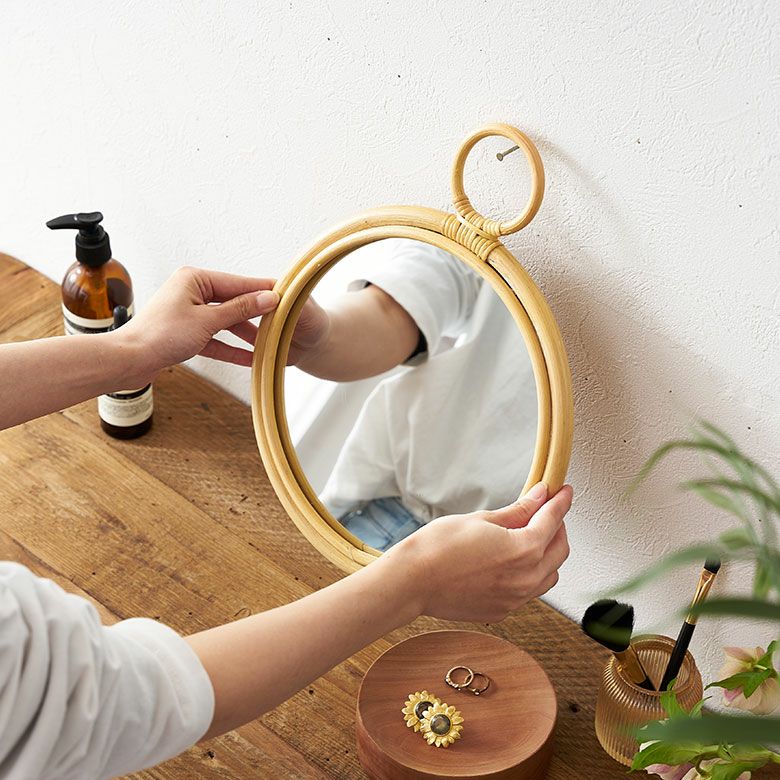 掛け鏡 円形 小さめ コスメミラー 籐 アンティーク風 壁掛けミラー 丸型 編み込み柄 ラタン Sサイズ 直径22cm [91328]【 ミラー 鏡 丸 ウォールミラー インテリアミラー 天然素材 壁掛け 吊り下げ アンティーク調 化粧鏡 おしゃれ メイクアップミラー シンプル アジアン雑貨 アジアン 雑貨 リゾート 】