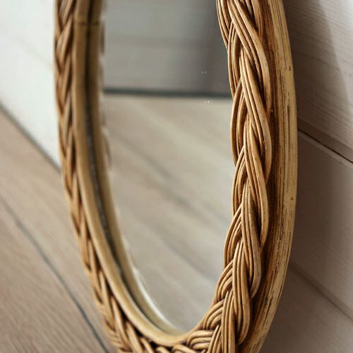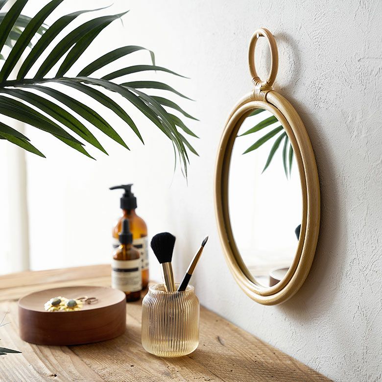 掛け鏡 楕円形 コスメミラー 籐 アンティーク風 壁掛けミラー 丸 オーバル型 編み込み柄 ラタン Lサイズ 直径34cm [91327]【 ミラー 鏡 ウォールミラー インテリアミラー 天然素材 壁掛け 吊り下げ アンティーク調 化粧鏡 おしゃれ メイクアップミラー シンプル アジアン雑貨 アジアン 雑貨 リゾート 】