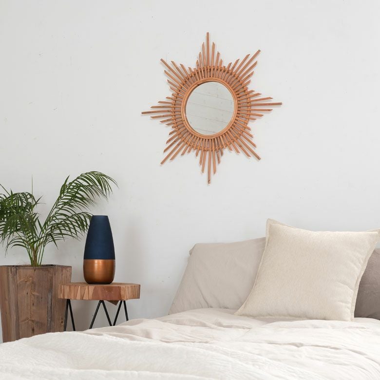 壁掛鏡 壁掛け式 吊り下げ かがみ カガミ ナチュラル 籐 ミラー 鏡 星 スター 壁掛け ラタン アジアン 直径59cm [13876]【 壁掛けミラー ウォールミラー 壁掛け鏡 デザインミラー 幸運 ラッキースター モチーフ ウォールデコレーション インテリア おしゃれ エスニック BOHO ボタニカル アジアン雑貨 バリ島 リゾート 】