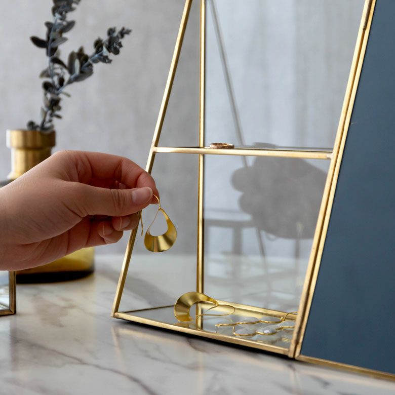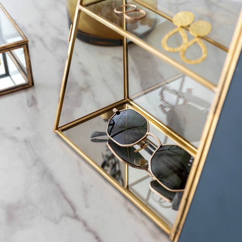 鏡 ボックス ケース ブラス おしゃれ かわいい コレクション ジュエリーケース アクセサリー ジュエリー 収納 ガラス 真鍮 ミラー ゴールド 金 クリア 約 W 17cm D 9cm H 23.5cm [66980]【 ジュエリーボックス ガラスケース ミラーケース アクセサリーケース アンティーク風 見せる収納 ディスプレイ リゾート アジアン雑貨 】