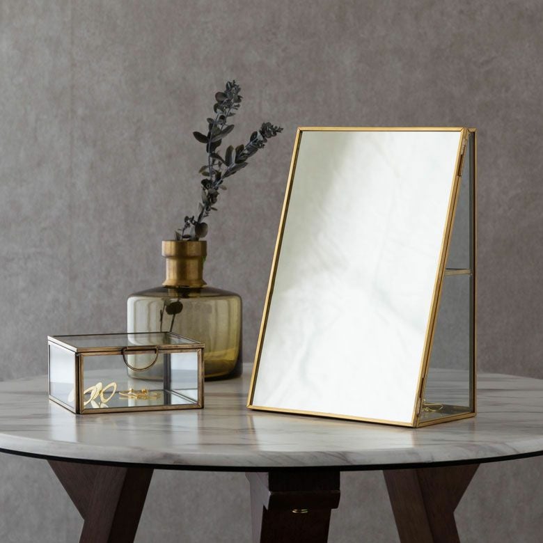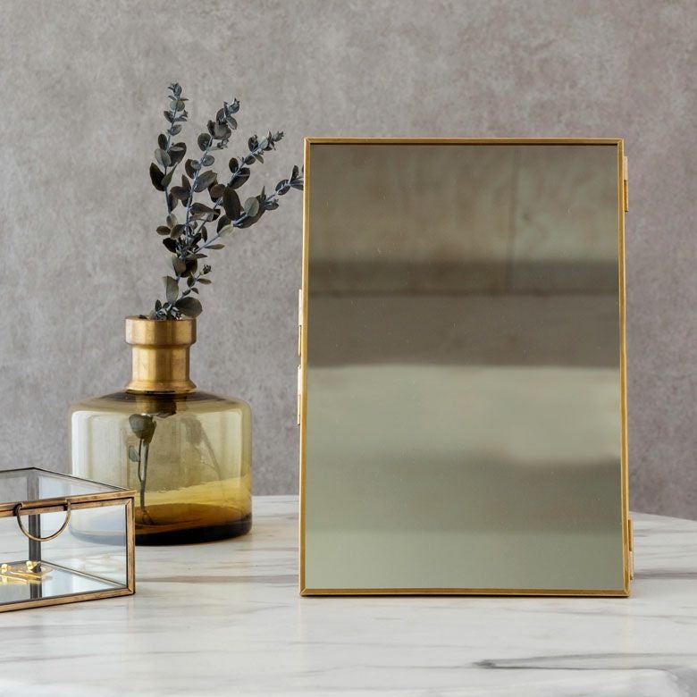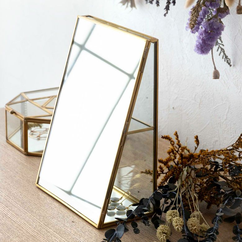 立て鏡 コスメミラー 真鍮 フレーム スクエア型 ゴールド化粧鏡 かわいい メイクアップミラー シンプル 軽量 インテリア雑貨 アンティーク風 シャビ― ガーリー ギフト プレゼント スタンドミラー スクエア型 Sサイズ 真鍮フレーム 鏡 かがみ カガミ ミラー 卓上ミラー 卓上鏡 アンティーク調 長方形 スタンドタイプ 化粧鏡 おしゃれ メイクアップミラー シンプル インテリア雑貨 アジアン 雑貨 アジアン雑貨 [66717]