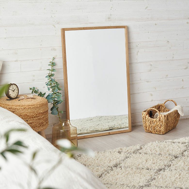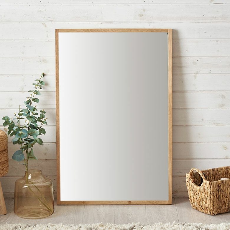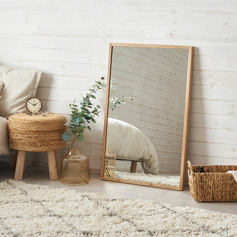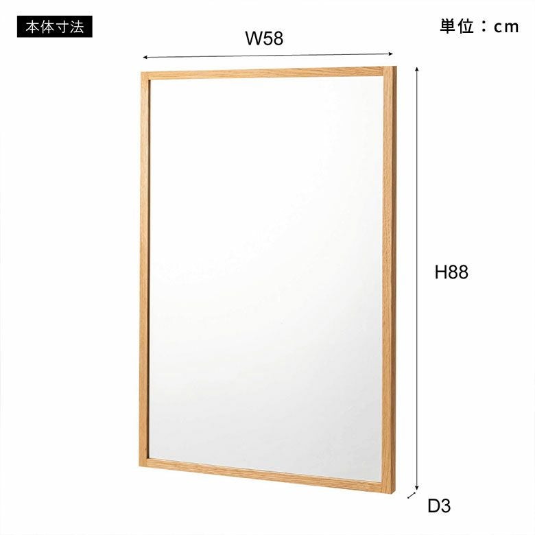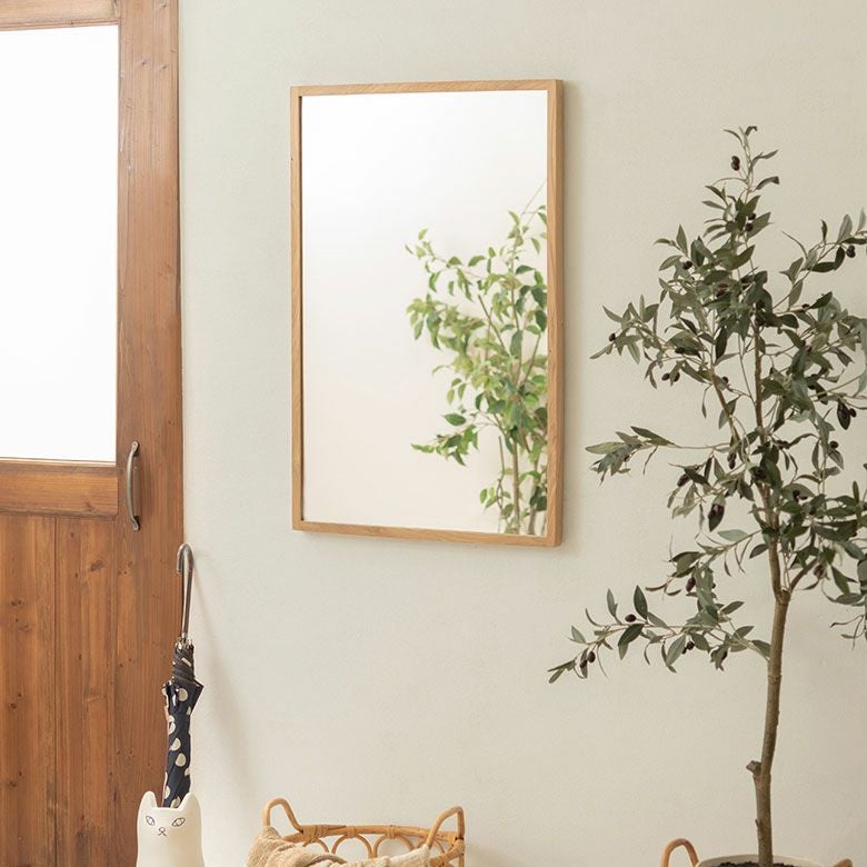 インテリアミラー 無垢材 大きめ パウダールーム 洗面所 鏡 壁掛けミラー 長方形 オーク材 ナチュラル 約 W 58cm D 3cm H 88cm ミラー ウォールミラー 飛散防止 かがみ 化粧鏡 壁かけ鏡 立て掛け鏡 ウォールデコレーション リビング 寝室 玄関 トイレ おしゃれ 北欧 インテリア シンプル 雑貨 アジアン雑貨 [91581]