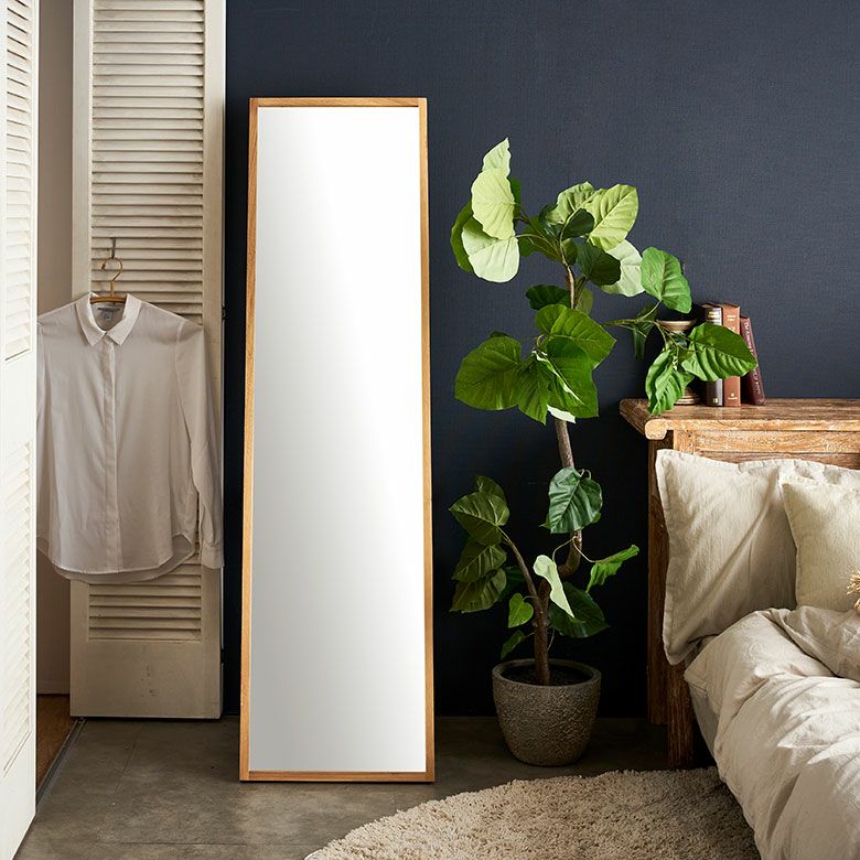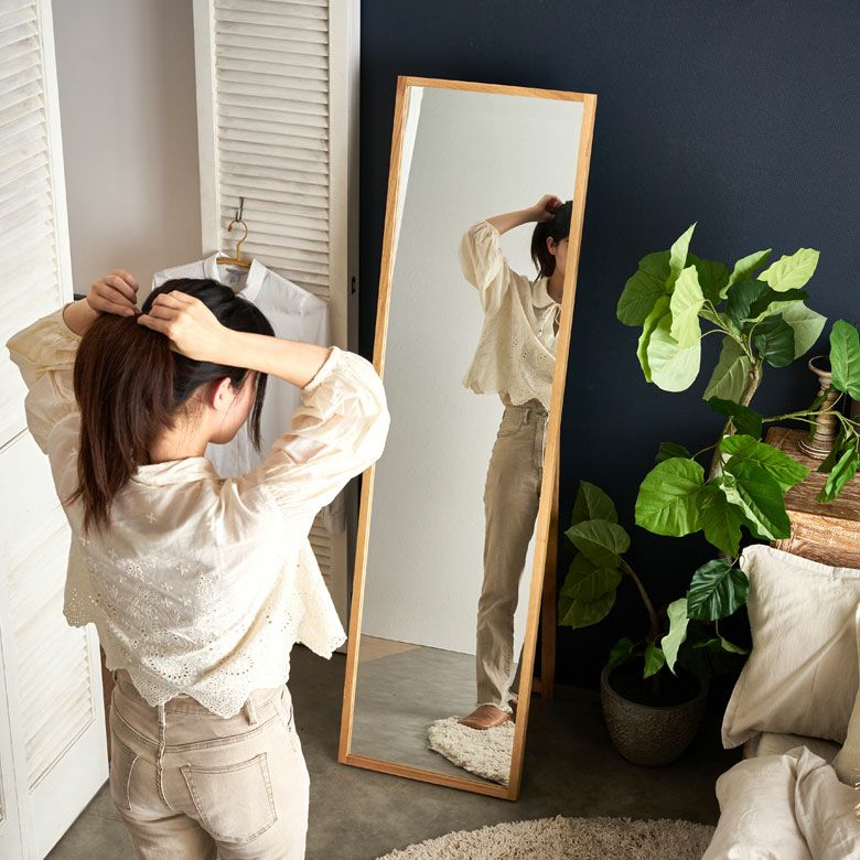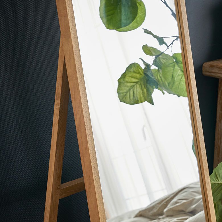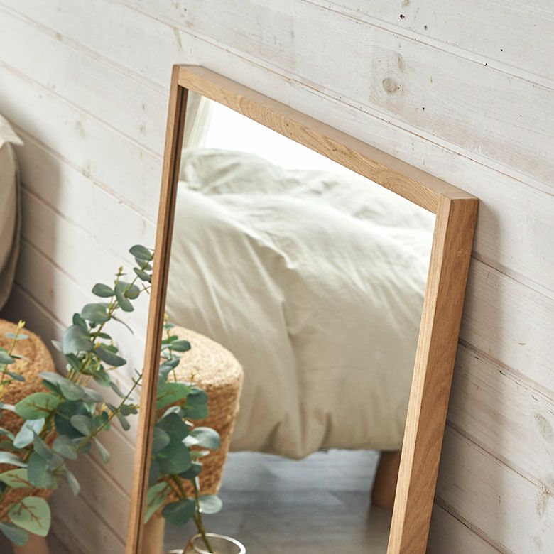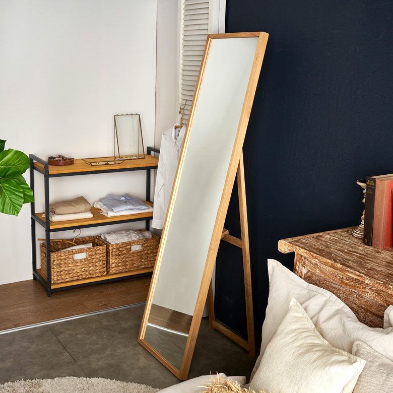 インテリアミラー 無垢材 全身 大きめ パウダールーム 洗面所 サロン カフェ 店舗 レストラン 着替え 組立式 内装 業務用 一人暮らし ワンルーム 結婚 引っ越し 祝い プレゼント ギフト スタンドミラー 壁掛けミラー 鏡 ミラー オーク材 ナチュラル 天然木 約 W 43cm D 45cm H 158cm 姿見 飛散防止 かがみ 化粧鏡 壁かけ鏡 立て掛け鏡 ウォールデコレーション リビング 寝室 玄関 おしゃれ 北欧 インテリア シンプル 雑貨 アジアン雑貨 アジアン [91578]