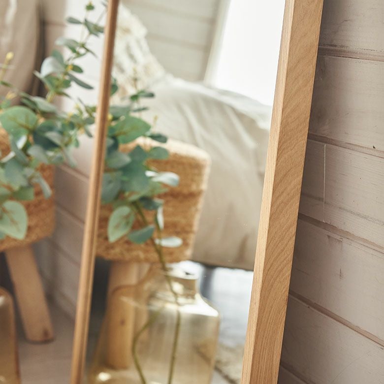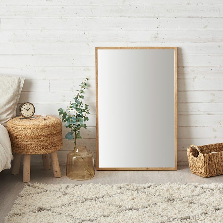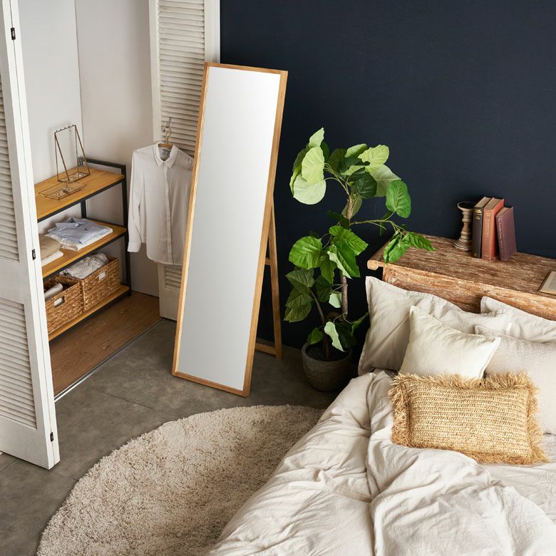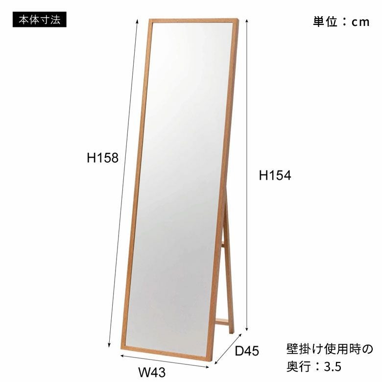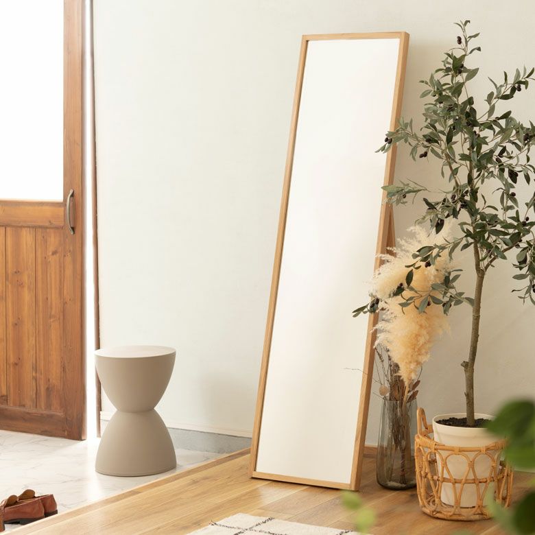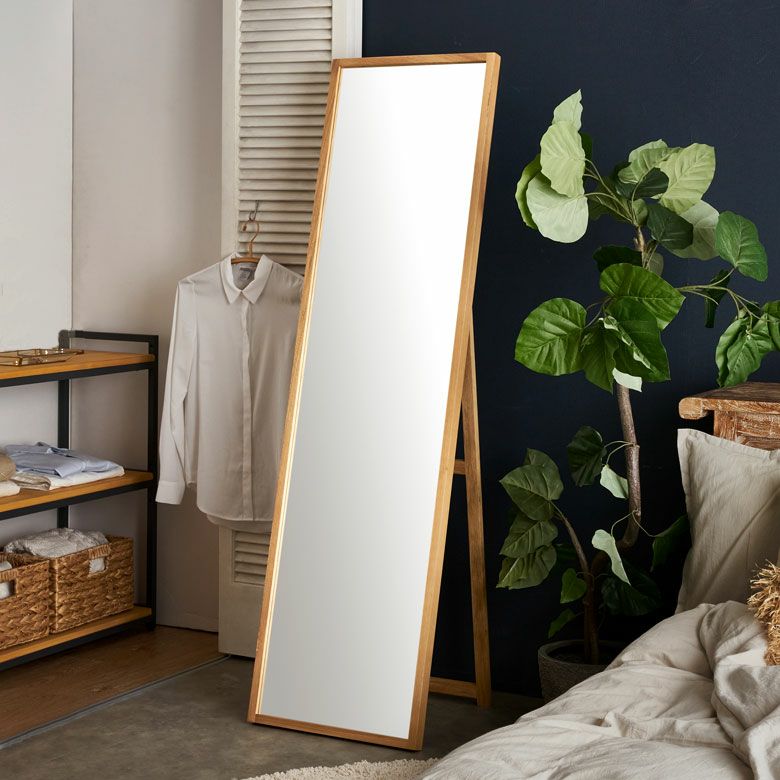 インテリアミラー 無垢材 全身 大きめ パウダールーム 洗面所 サロン カフェ 店舗 レストラン 着替え 組立式 内装 業務用 一人暮らし ワンルーム 結婚 引っ越し 祝い プレゼント ギフト スタンドミラー 壁掛けミラー 鏡 ミラー オーク材 ナチュラル 天然木 約 W 43cm D 45cm H 158cm 姿見 飛散防止 かがみ 化粧鏡 壁かけ鏡 立て掛け鏡 ウォールデコレーション リビング 寝室 玄関 おしゃれ 北欧 インテリア シンプル 雑貨 アジアン雑貨 アジアン [91578]
