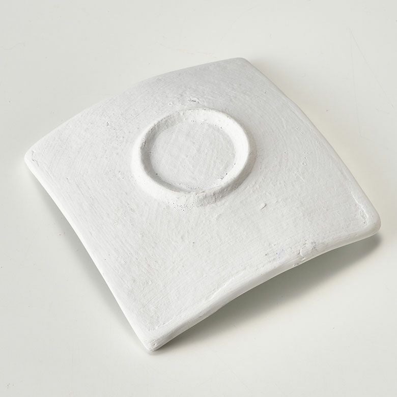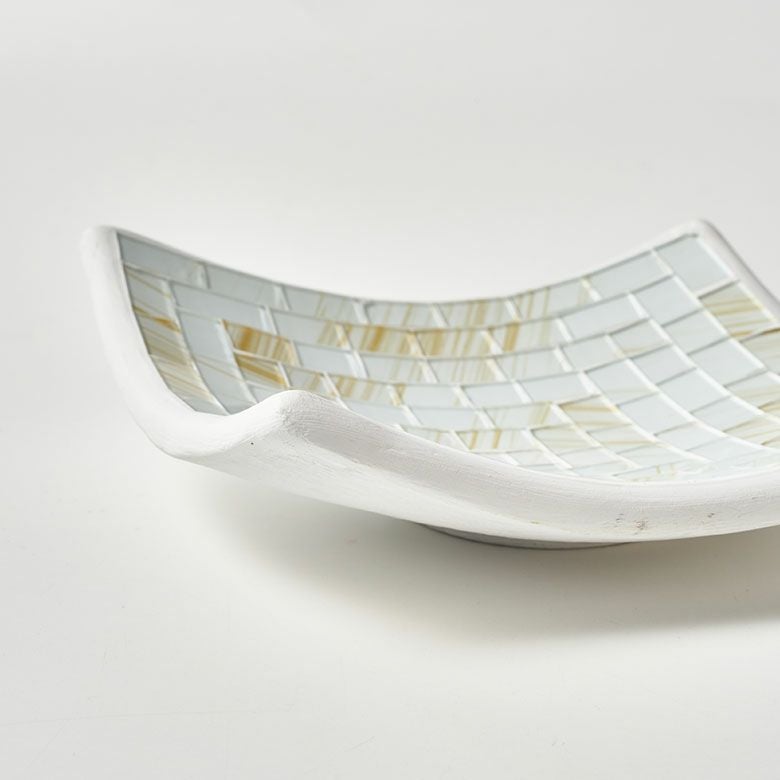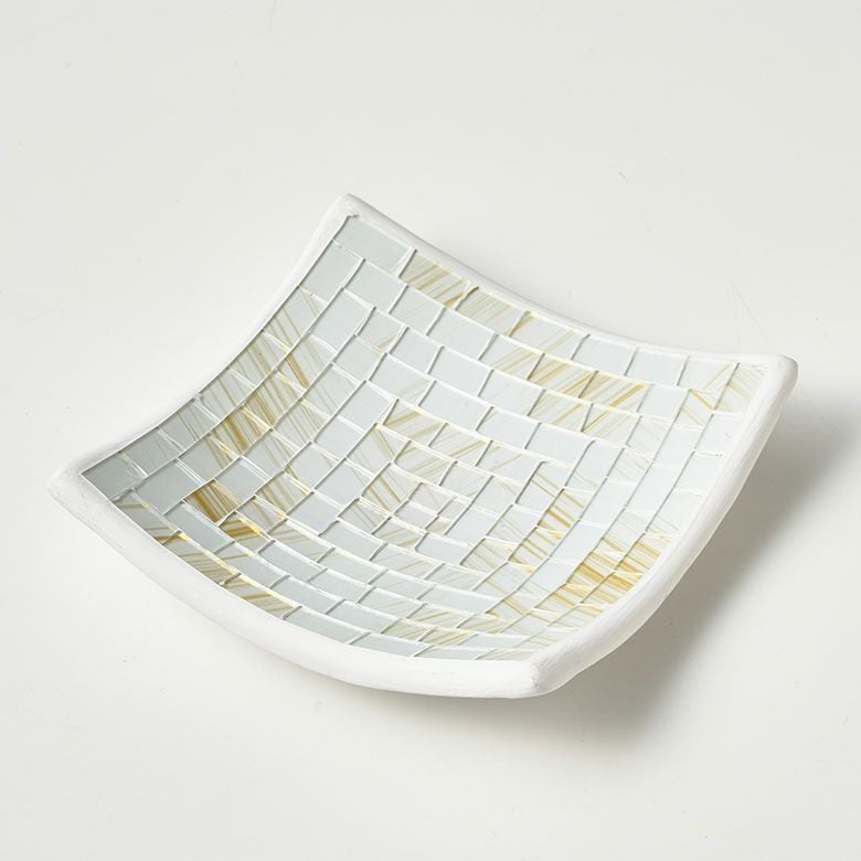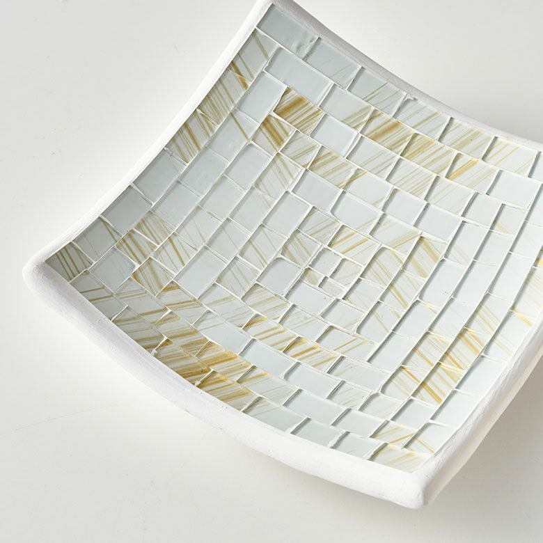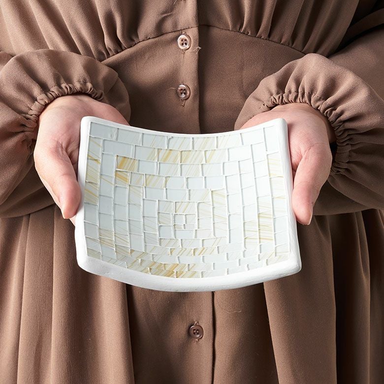 厚みのある陶器の表面にガラスをモザイクタイルのように並べて