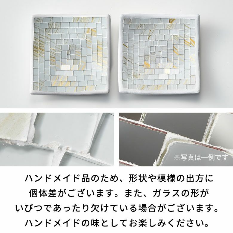 バリ島のリゾートホテルやヴィラなどで使われているデコレーショントレイ。これは全てバリニーズ(バリ島の人々の呼称)の手作りの商品。 厚みのある陶器の表面にガラスをモザイクタイルのように並べて貼り付けたプレートは光が当たるとキラキラ輝きます。 さらにガラスの中にはゴールドとシルバーのラメが入っているのでより華やかな印象を受けます。