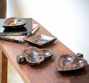 深みのあるダークブラウンのトレイに、ひとつひとつ手描きで絵付けした味のあるトレイ。独特の風合いを持つ素朴でレトロな雰囲気は、アジアン雑貨好きのみならず思わずひとめぼれしちゃいそうな可愛さ!全マーク欲しくなること必至のアイテムです♪