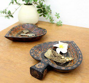 トランプ柄でおなじみ、ハート・ダイヤ・クローバー・スペードの4マークが可愛いトレイが新登場!ハンドメイドで作られた独特の風合いと、手描きのフラワー柄もレトロで可愛い、当店イチ押しのアジアントレイです。