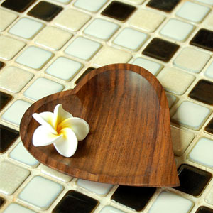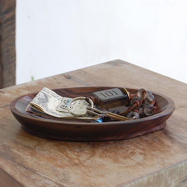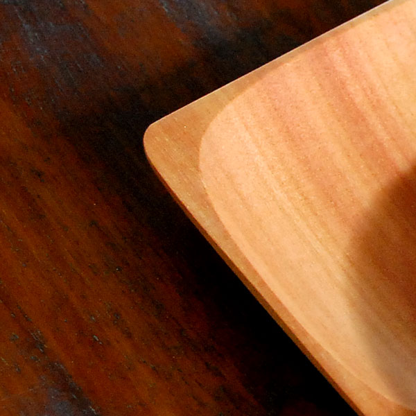 見た目にもナチュラルな風合いのサウォウッドを彫って作られた、小さな正方形の木製トレイ。 1枚の無垢材をくり抜いて作られているので、とっても堅くて丈夫。 温かみのある色合いと美しい木目が特徴です。
