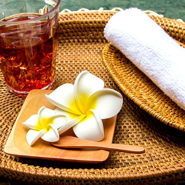 おもてなしアイテムとして造花などを置くと、アジアンカフェやスパの雰囲気に♪