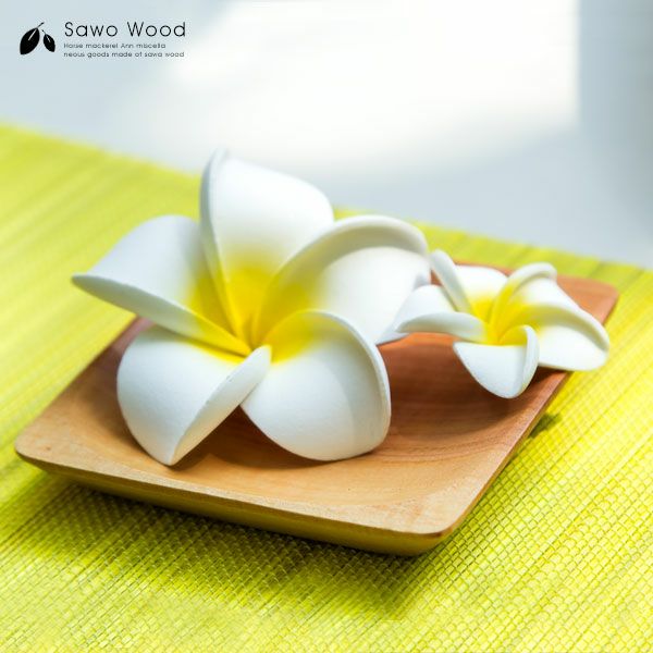 見た目にもナチュラルな風合いのサウォウッドを彫って作られた、小さな正方形の木製トレイ。