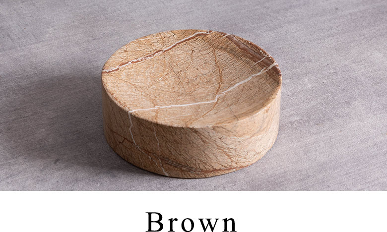 世界有数の大理石産地として知られるインドの天然大理石を使用し、熟練職人がひとつひとつ丁寧に手作業で仕上げることで、素材本来の重厚感や温もり、そして自然が生み出す唯一無二の美しい表情を引き立てています。