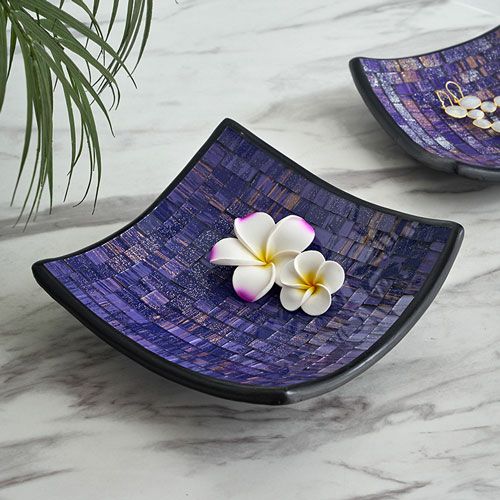 高級感のある華やかな雰囲気に仕上がるバリ島の人気アジアン雑貨 ラメの入ったモザイクガラスのデコレーショントレイ 15.5cmサイズ バイオレット アジアン トレイ 小物入れ アクセサリートレイ バリ島 ナチュラル おしゃれ 小物トレー アクセサリートレー アクセサリー アジア雑貨 バリ雑貨 アジアン雑貨 [10901]
