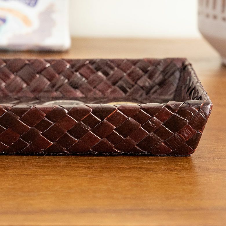 キャッシュトレイや小物入れにちょうどいいバリ島の人気アジアン雑貨 キャッシュトレイ ミニトレイ パンダン製 2色展開 キャッシュトレー 小物入れ おしゃれ かわいい 革調 アジアン雑貨 インテリア ナチュラル トレイ 収納 小物トレー アクセサリートレー アクセサリートレイ バリ雑貨 ハワイ メール便対応 [pt-11]