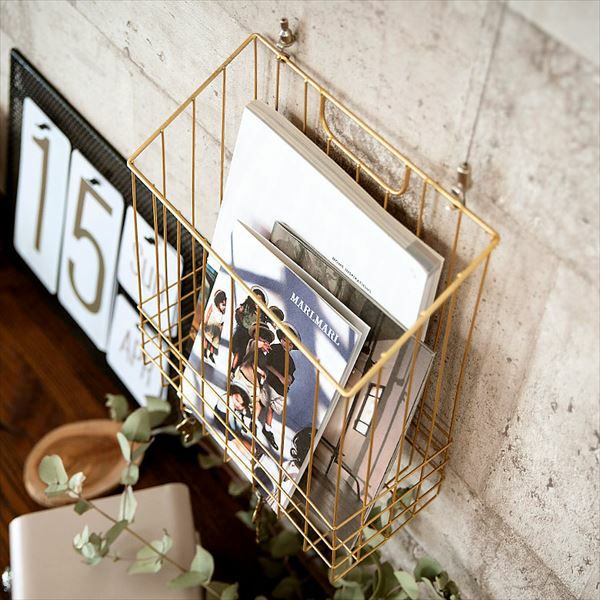 ゴールドワイヤー製 スクエアバスケット