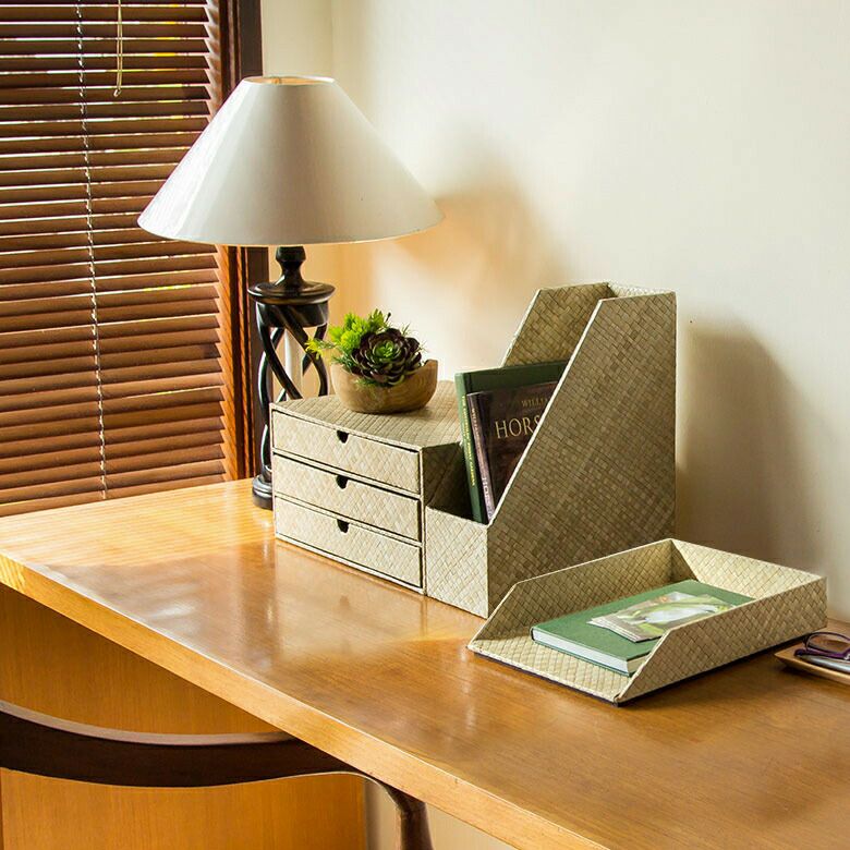 おしゃれなトレイでA4ファイルをキレイに分類!バリ島の人気アジアン雑貨 デスクトレー A4 パンダン製 2色展開 書類トレー ファイル収納 デスクトレイ ファイルトレー 卓上トレー デスク収納 収納ボックス レターケース a4 おしゃれ 小物トレー 小物入れ デスク アジアン雑貨 アジアン 雑貨 アジア雑貨 バリ雑貨 [ft-1171]