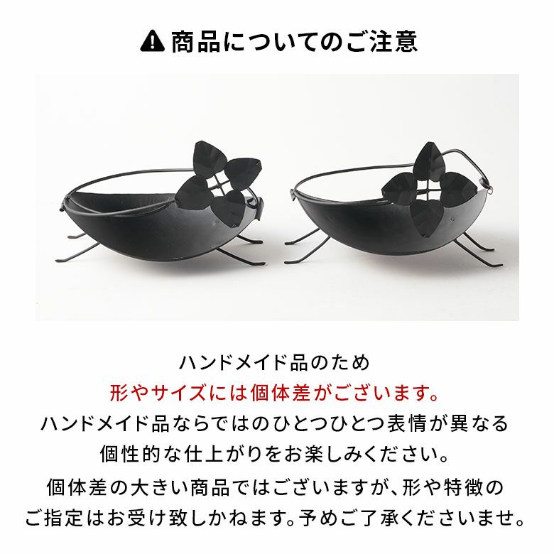 ハンドメイド品のため、形やサイズには個体差がございます。ハンドメイド品ならではの、ひとつひとつ表情が異なる個性的な仕上がりをお楽しみください。個体差の大きい商品ではございますが、形や特徴のご指定はお受け致しかねます。予めご了承くださいませ。
