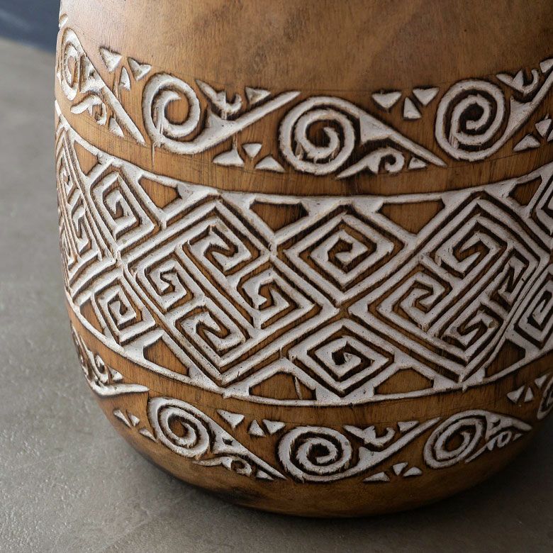 表面に施されたアジアンオーラ漂う彫刻は、インドネシア・スンバ島に伝わる伝統的な文様 オブジェとして置いておくだけで、エスニックな雰囲気を演出 ユニークなシルエットがインテリアの主役になるフラワーベース
