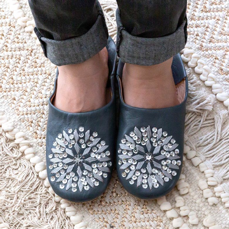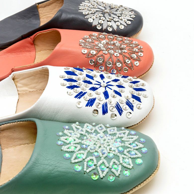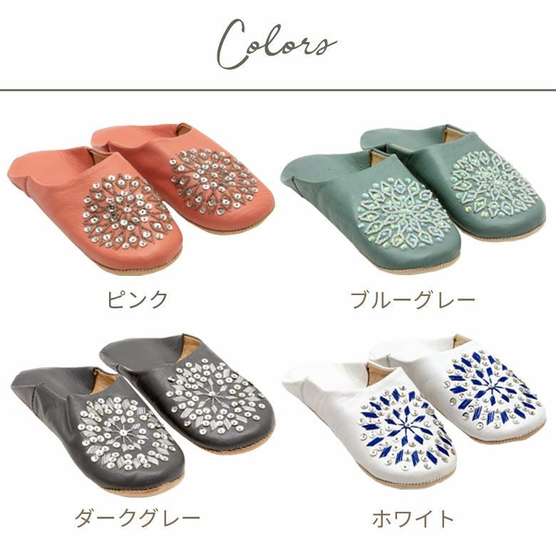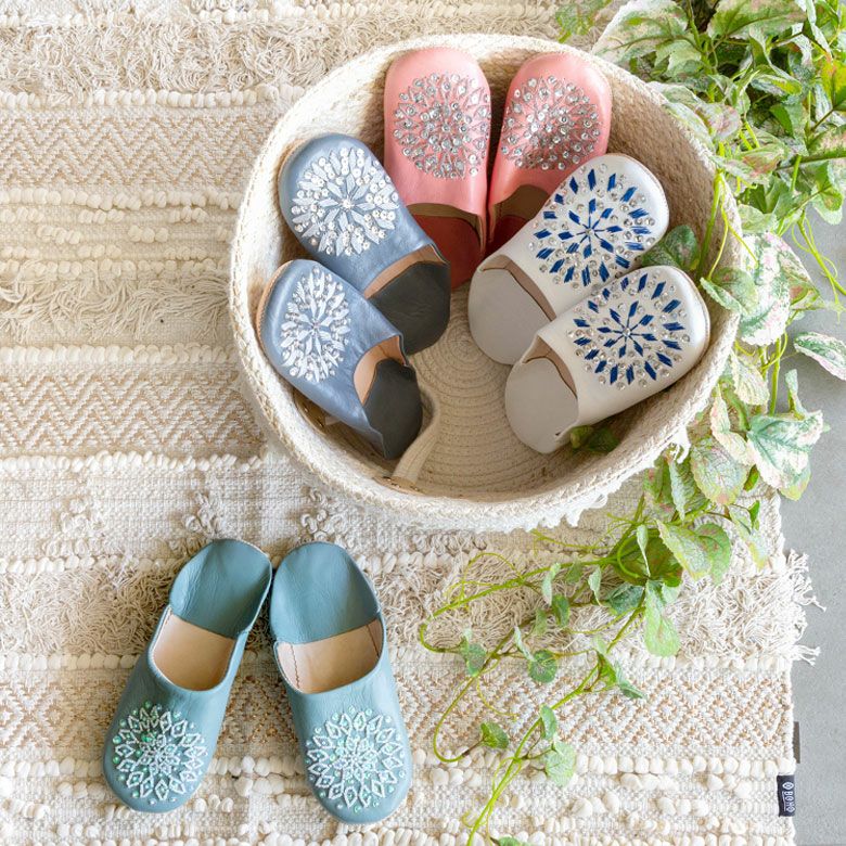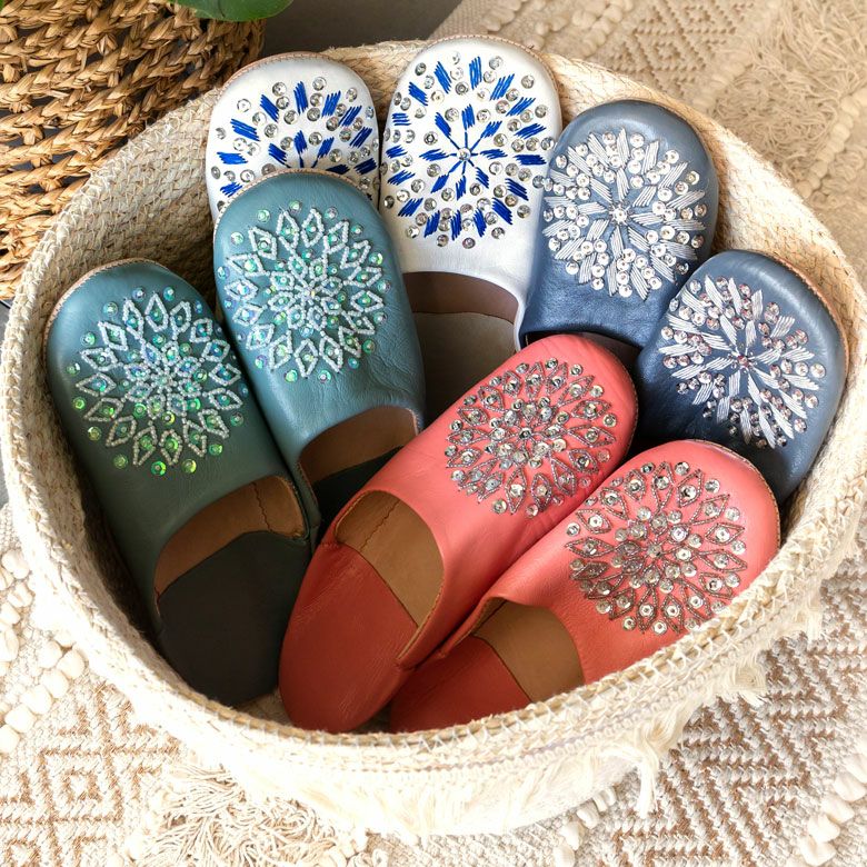 スリッパ エスニック 母の日 来客用 授業参観 携帯用 バブーシュ ビーズ 刺繍 スパンコール 革 [90043]【 スリッパ ルームシューズ 室内履き レディース 羊皮 レザー ハンドメイド モロッコ モロッカン おしゃれ プレゼント 新築祝 アジアン雑貨 アジアン 雑貨 】