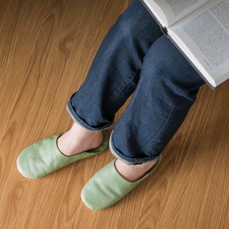 柔らかい羊革で作られたバブーシュは、冬は暖かく、夏は涼しく履き心地は格別。