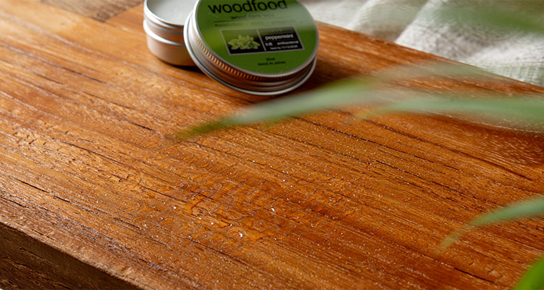 木材の表面をやさしく保護し、乾燥を防ぎながら撥水・抗菌効果をプラス。
