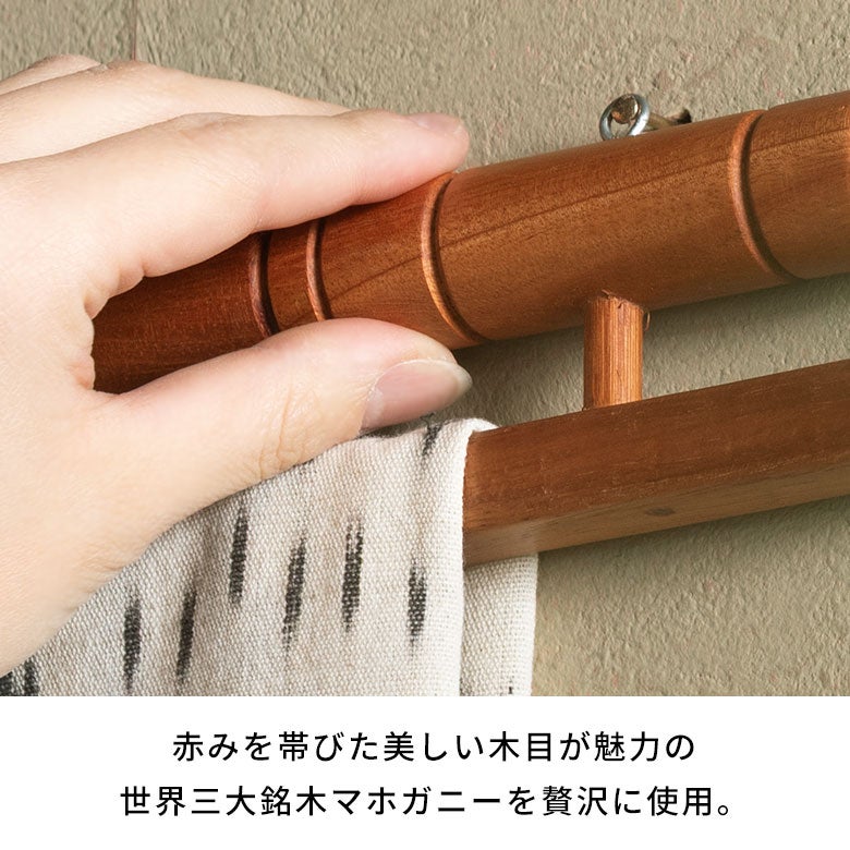 赤みを帯びた美しい木目が魅力の、マホガニー無垢材を贅沢に使用。オイル仕上げにより、天然木ならではのぬくもりと、使い込むほどに深まる風合いをお楽しみいただけます。