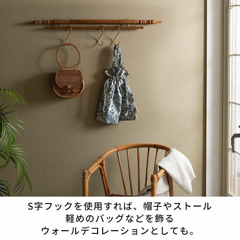 ・S字フックを使用し、ストールや帽子、軽めのバッグなどを掛けられるウォールデコレーションとしても