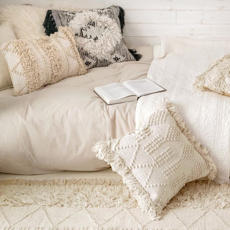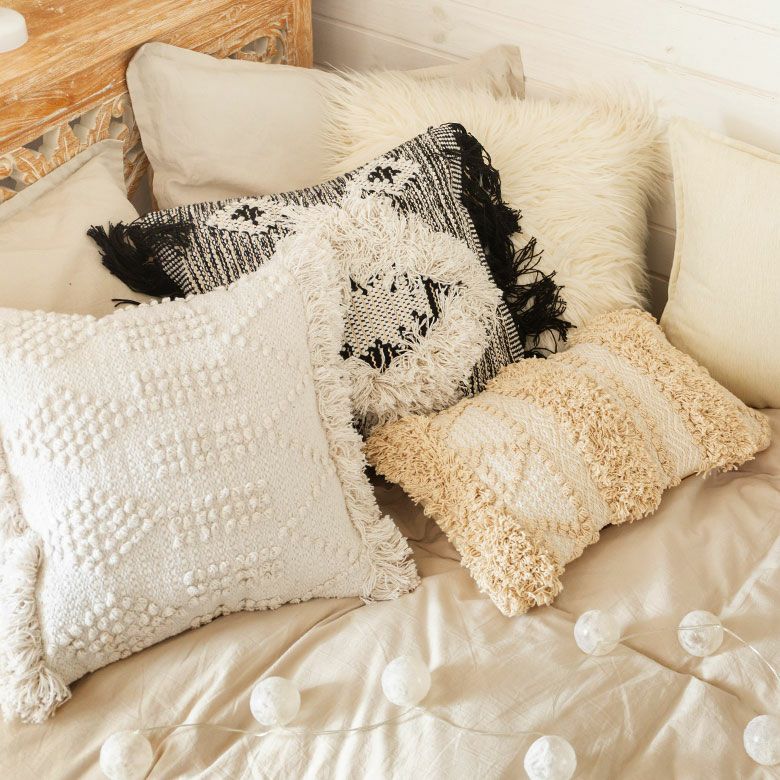 お部屋にほどよいスパイスを効かせてくれる、エスニック柄のクッションカバー。
