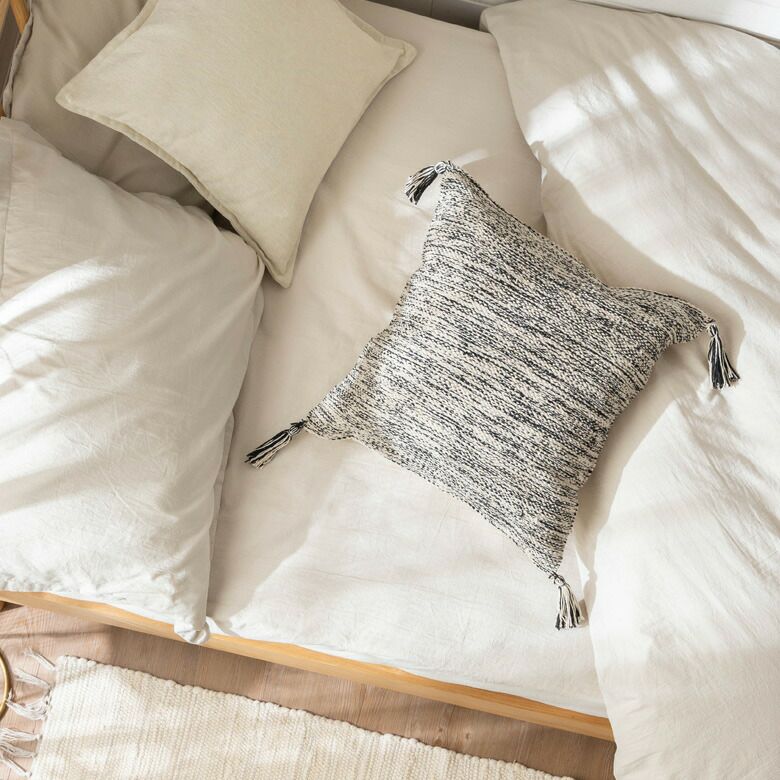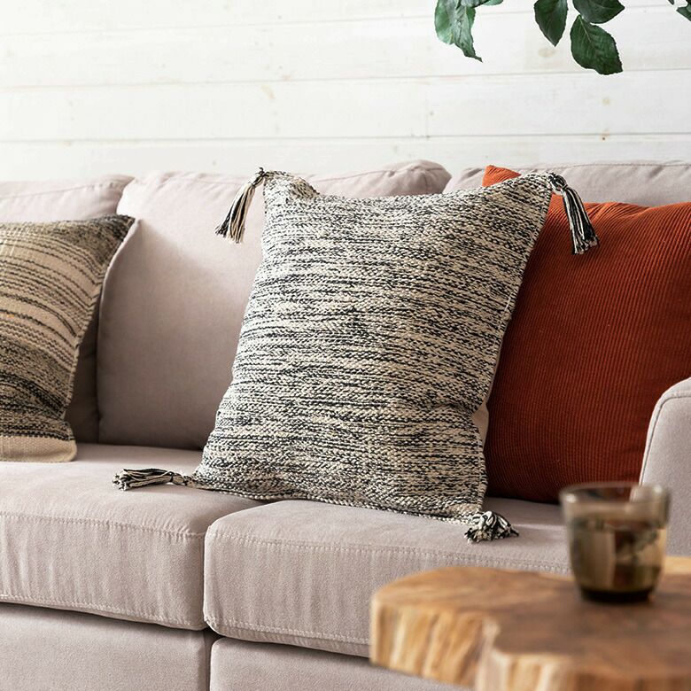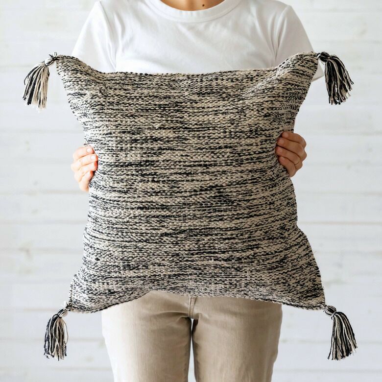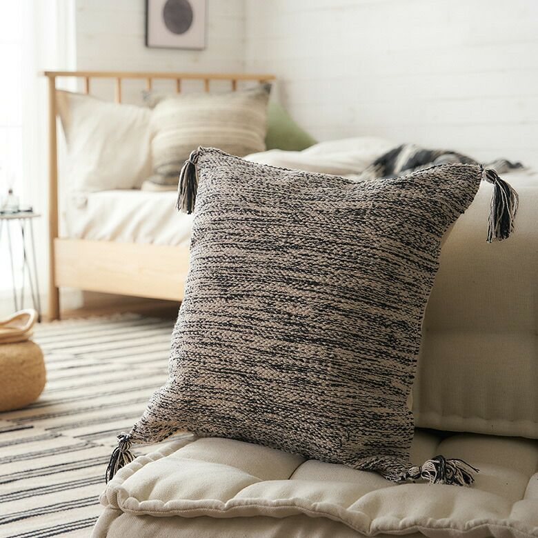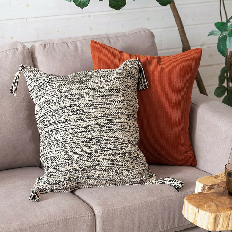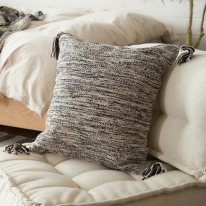 モノトーンのミックスカラーがおしゃれなクッションカバー。