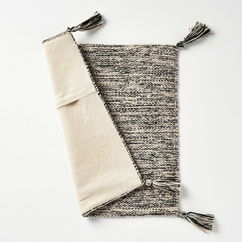 アイボリーとブラックの糸で織られた、ランダムなミックスカラーがおしゃれ。