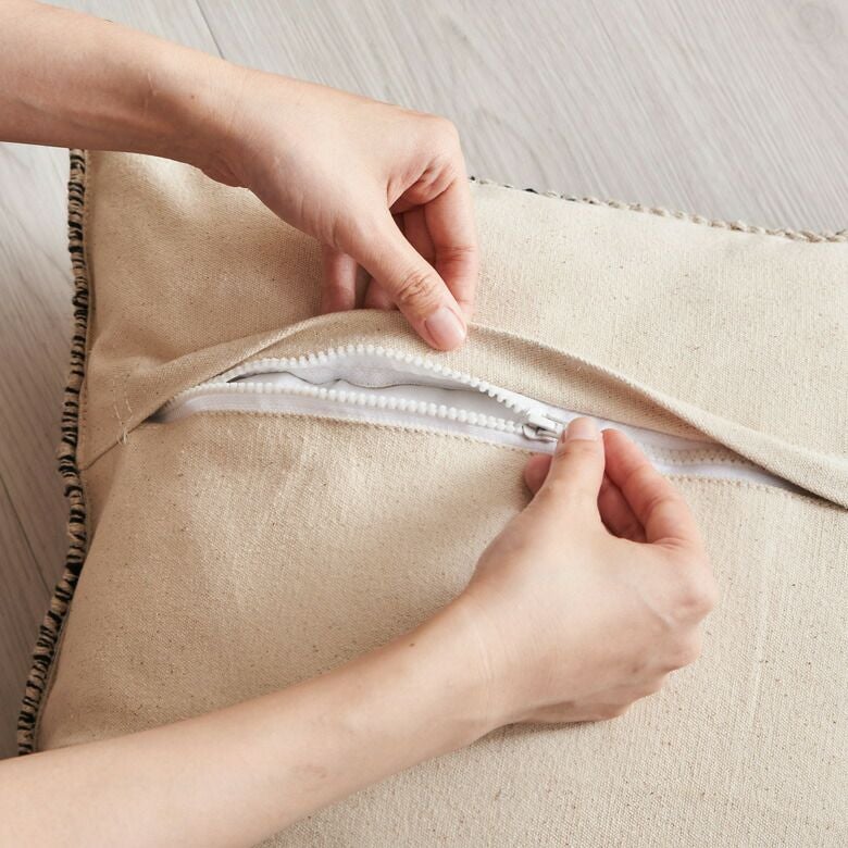 裏面にはファスナー付きで、クッションの取り出しもスムーズ。