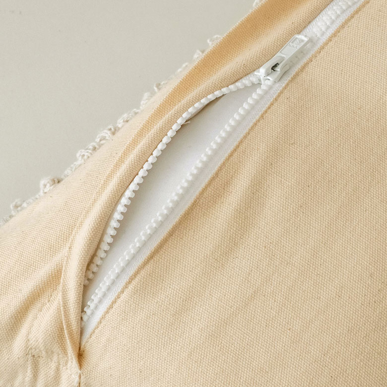 裏面のファスナーでクッションの出し入れスムーズ。 |