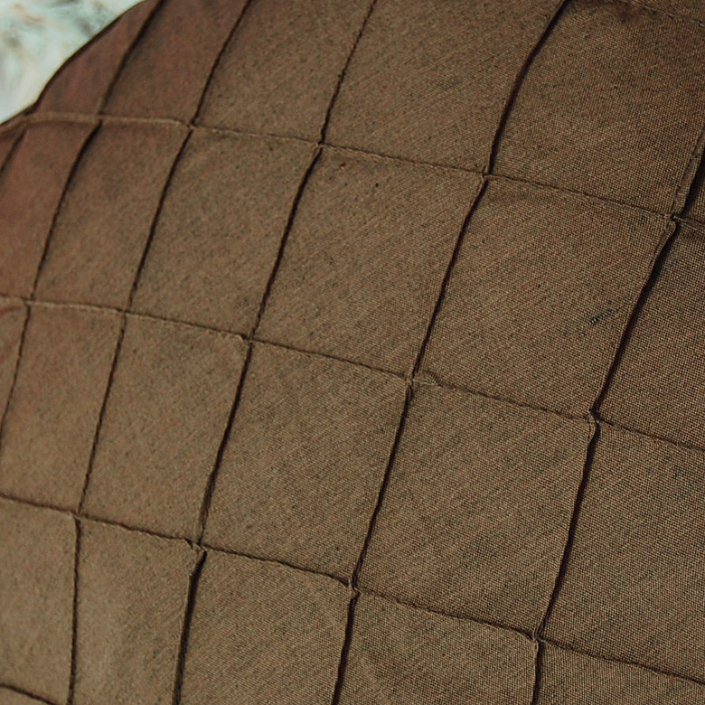 表面の生地を台形に縫って立体的なデザインに仕上げた、