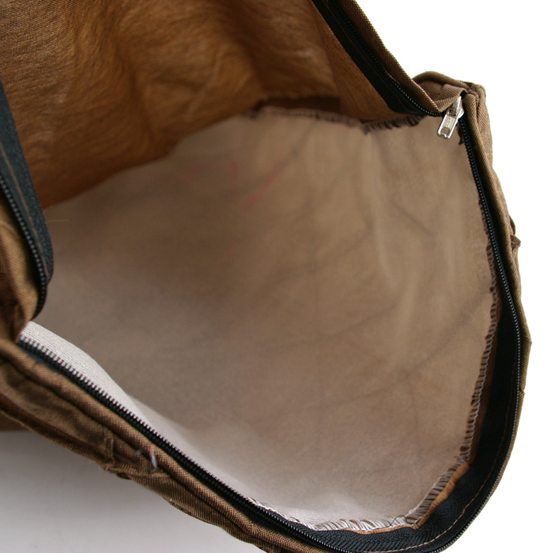 中身の開閉はファスナー式で、しっかり中身を収納できます。