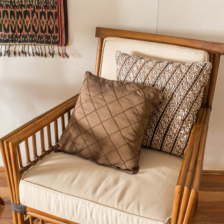 バリ島生まれのアジアンクッションカバー「Full Leprous」。サイズは約40cm×40cm。