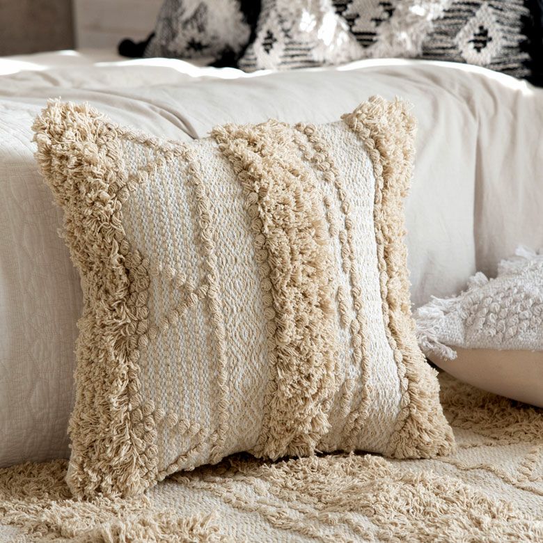 アイボリー×ベージュのクッションカバー。