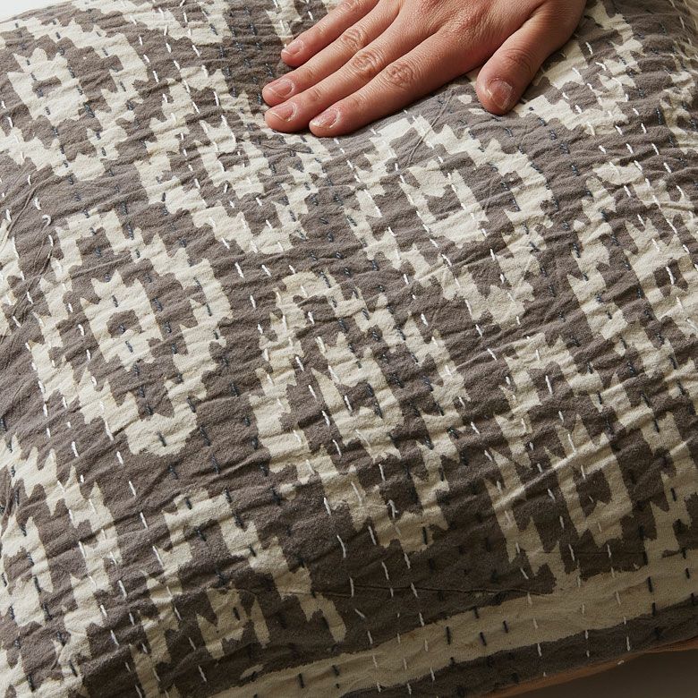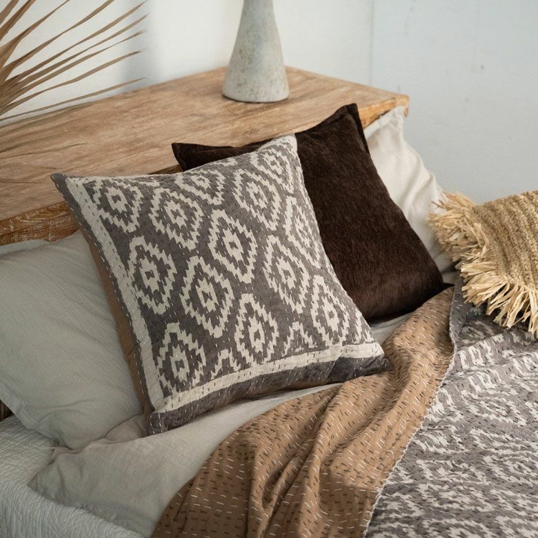 味わい深いブロックプリントのクッションカバーをご紹介。