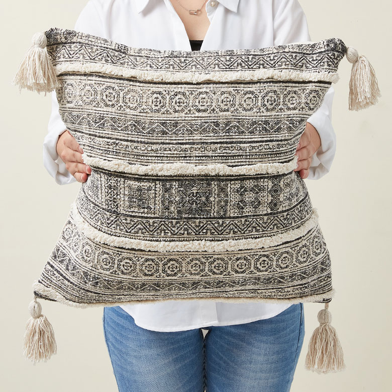 フリンジ付きクッションカバー