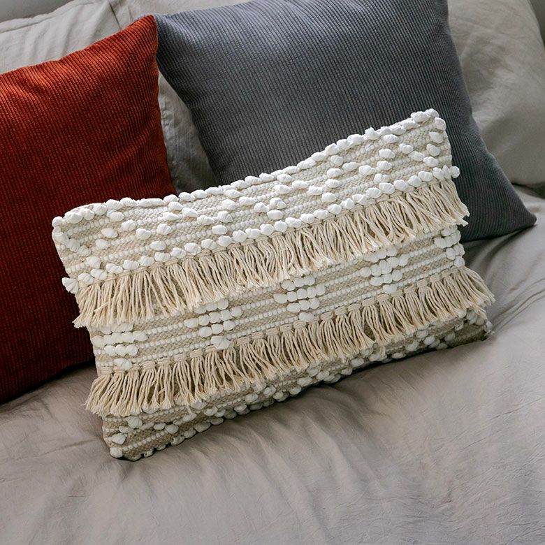 シンプルなデザインのクッションと合わせて、デコラティブピローとしても◎