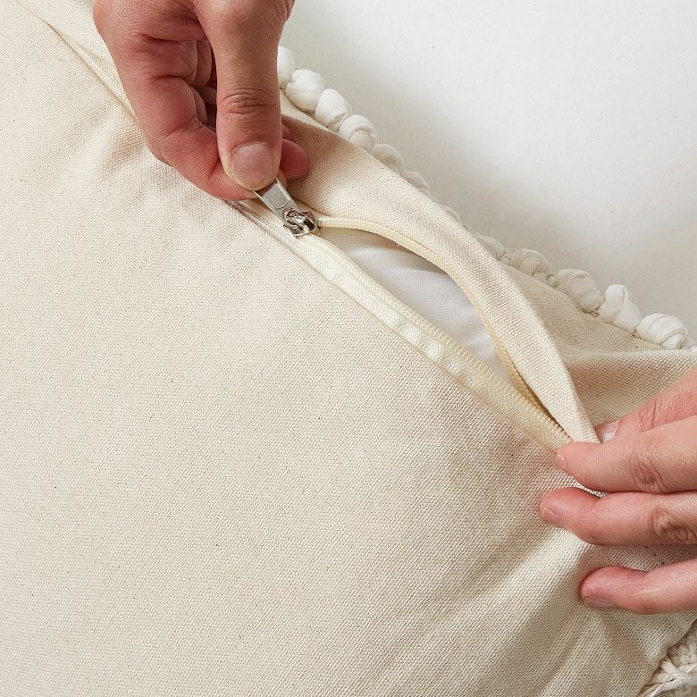 ![]() 裏面のファスナーでクッションの取り出しもスムーズ。 |