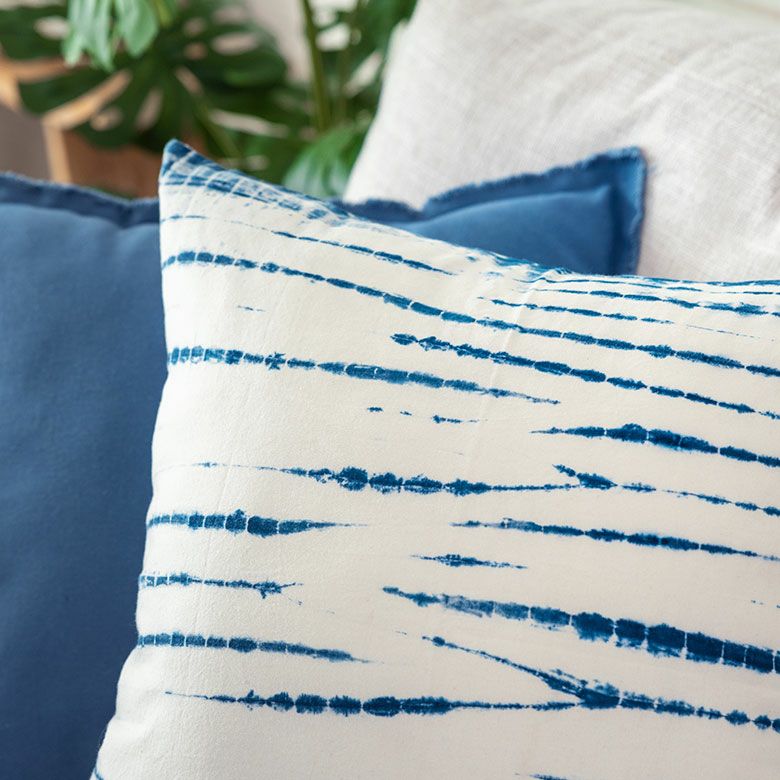 インディゴブルーの染色が味わい深いクッションカバー。