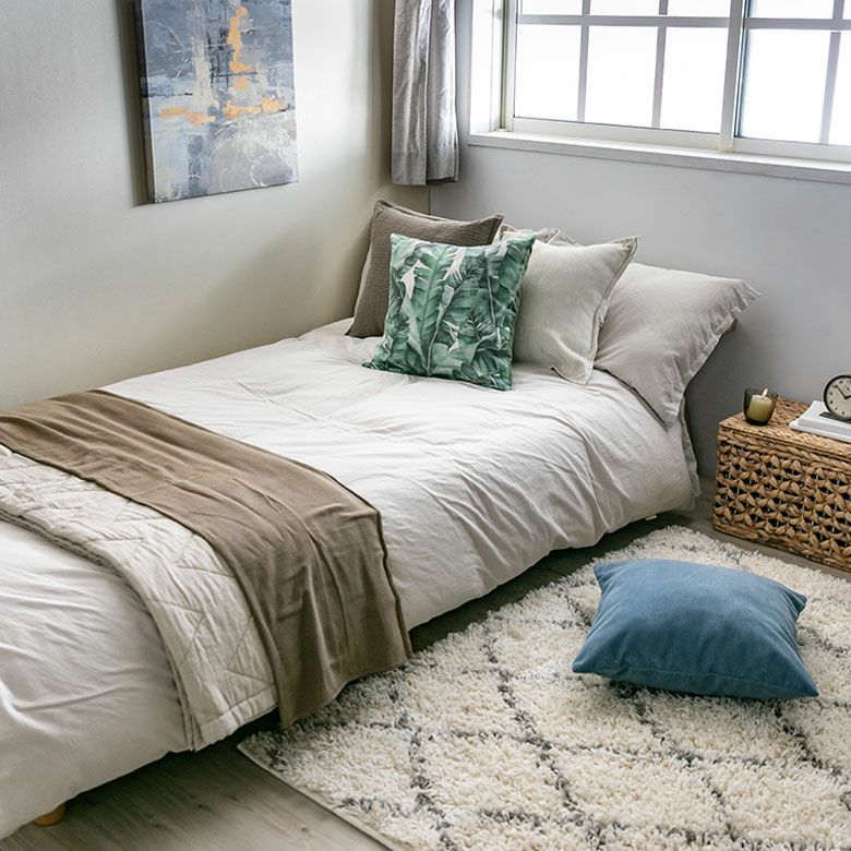 シンプルなデザインのクッションと合わせて、デコラティブピローとしても◎